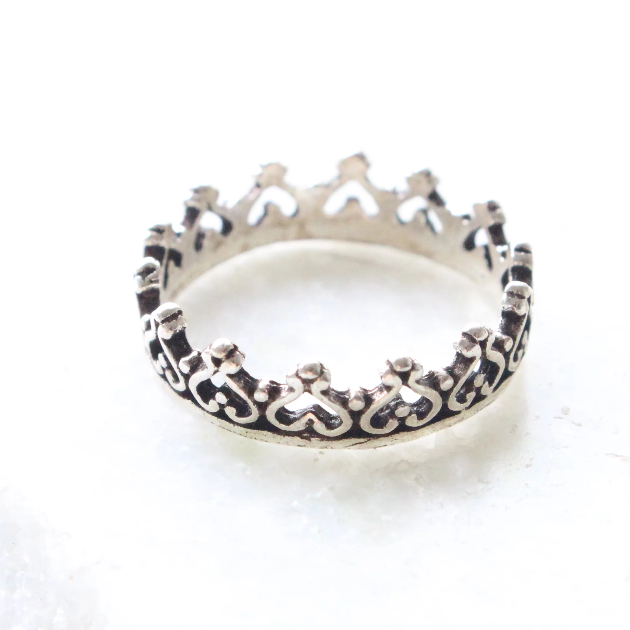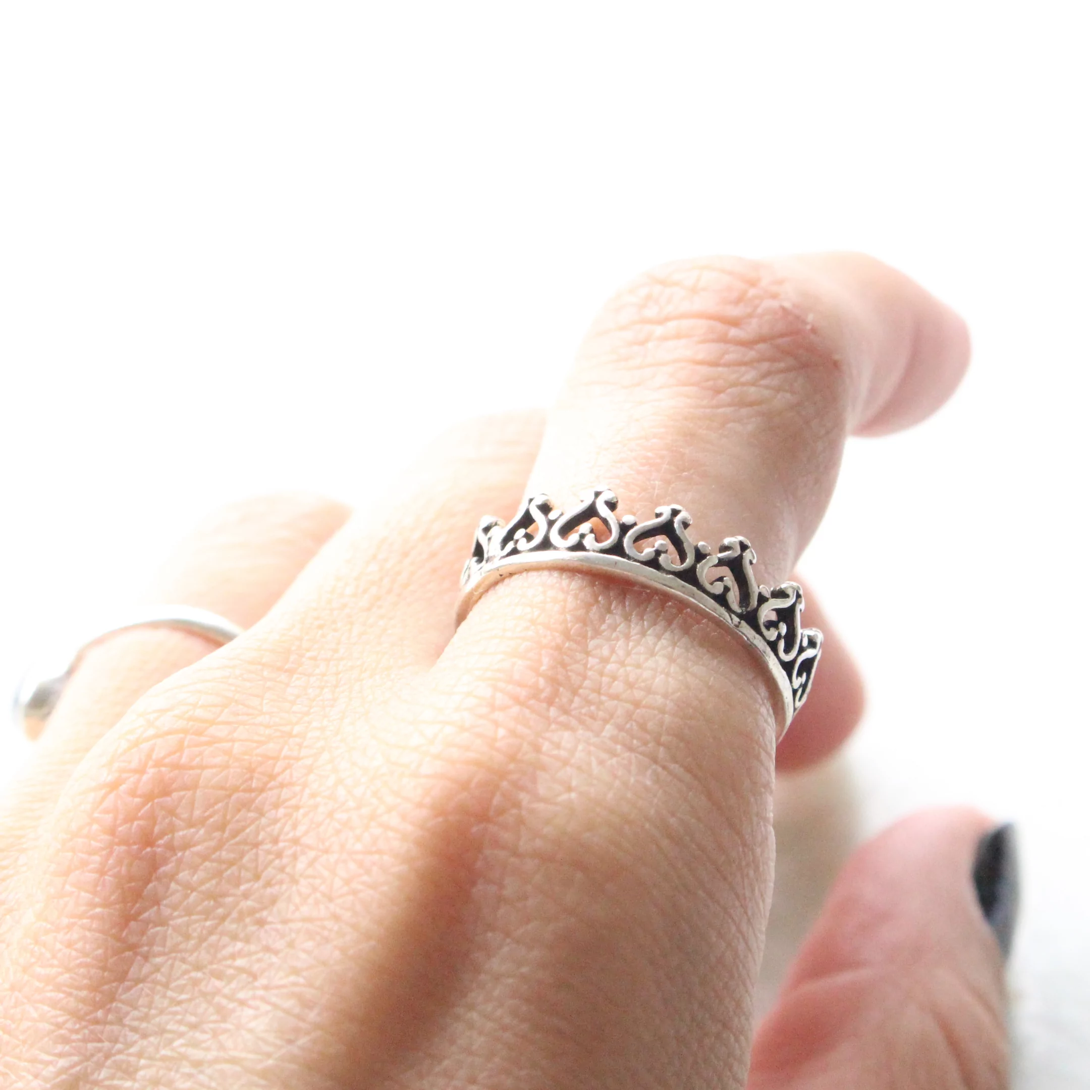 Anel de prata 925, também conhecida como prata de lei, modelo com detalhes em corações vazados