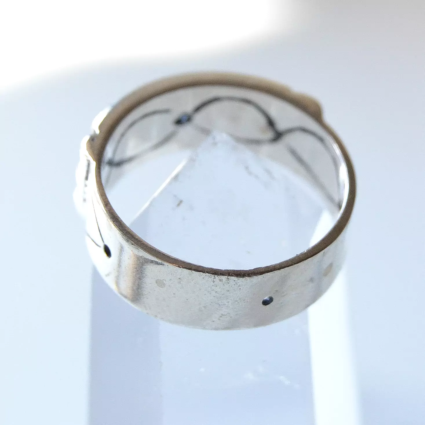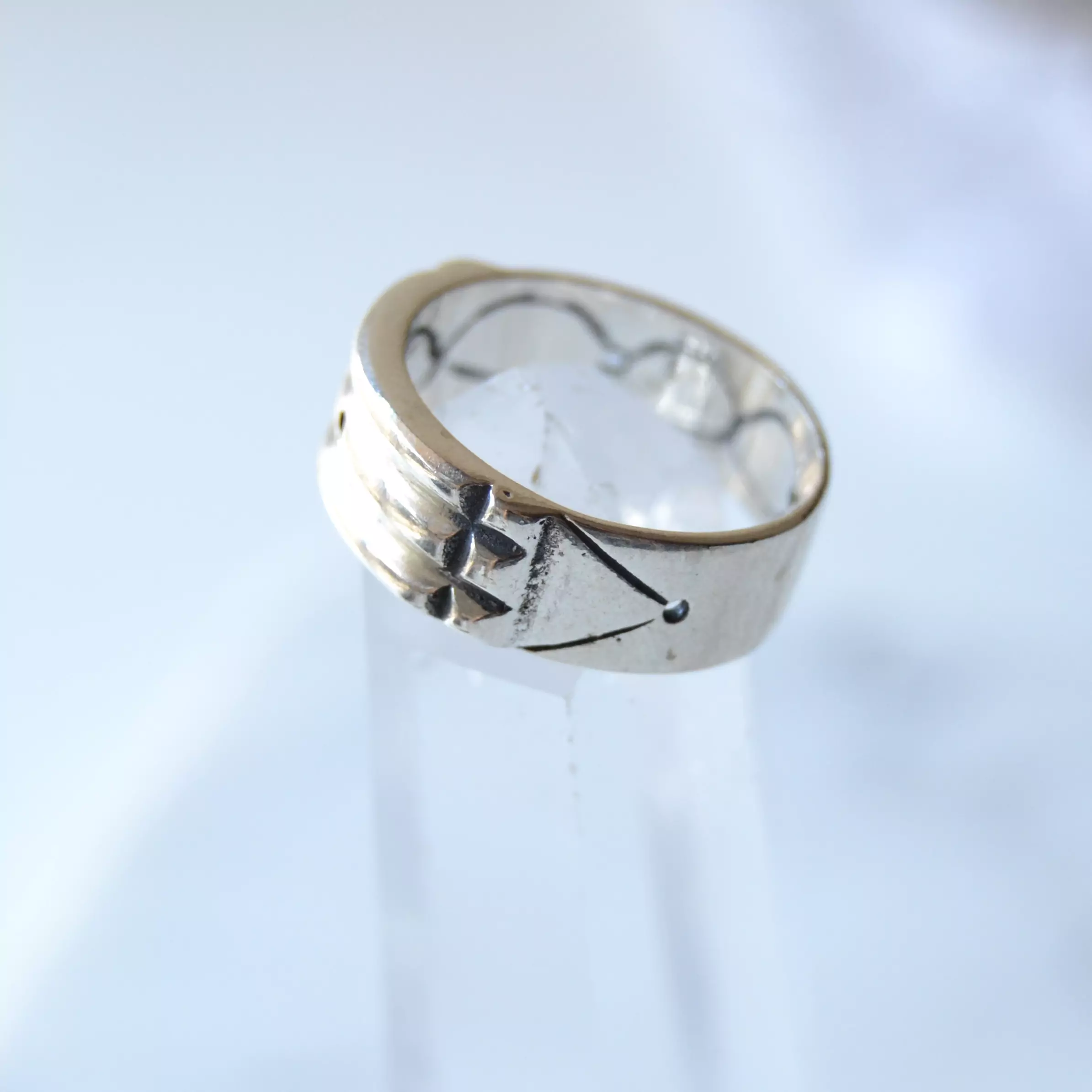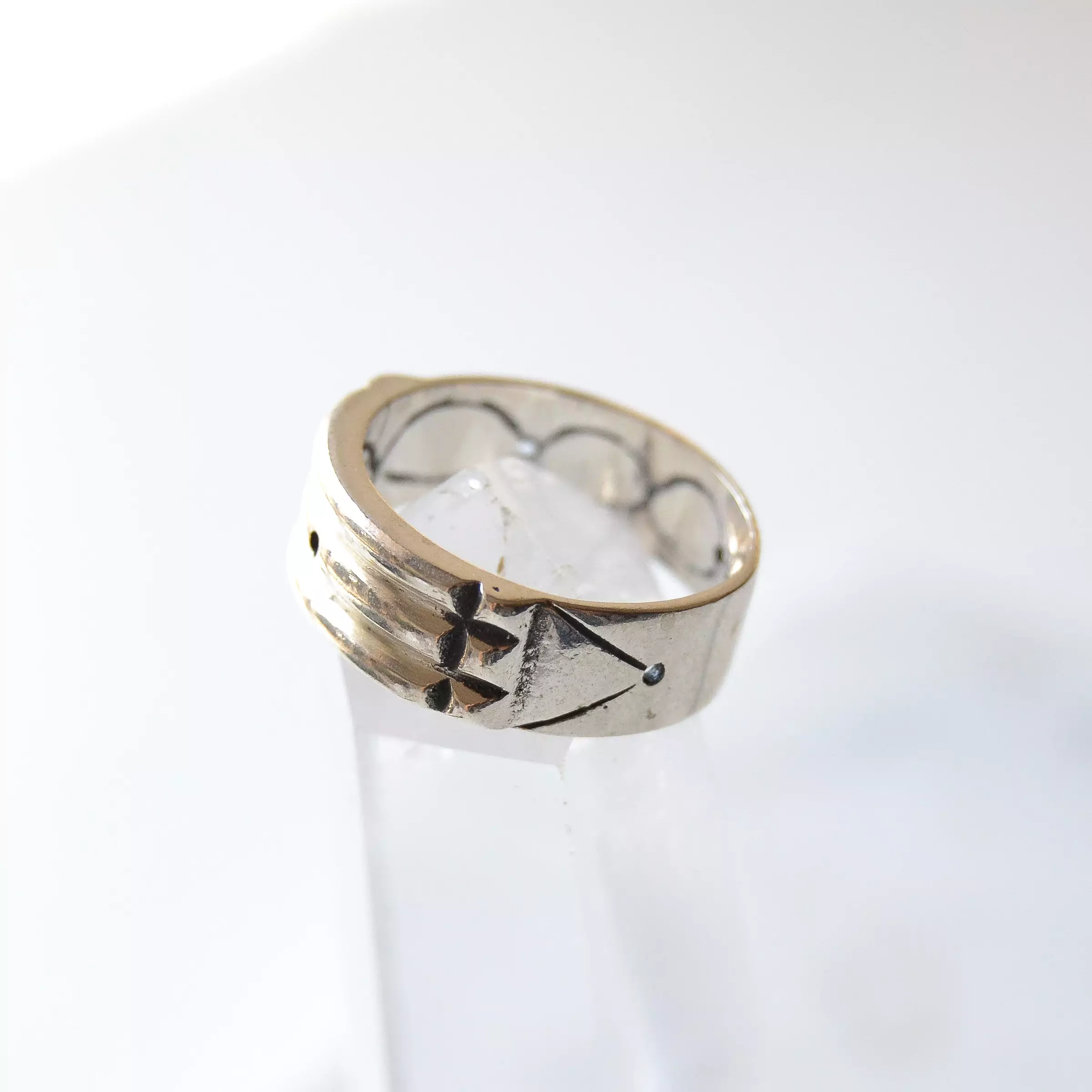 Anel de prata 925, também conhecida como prata de lei, modelo atlantis com desenhos em baixo relevo.