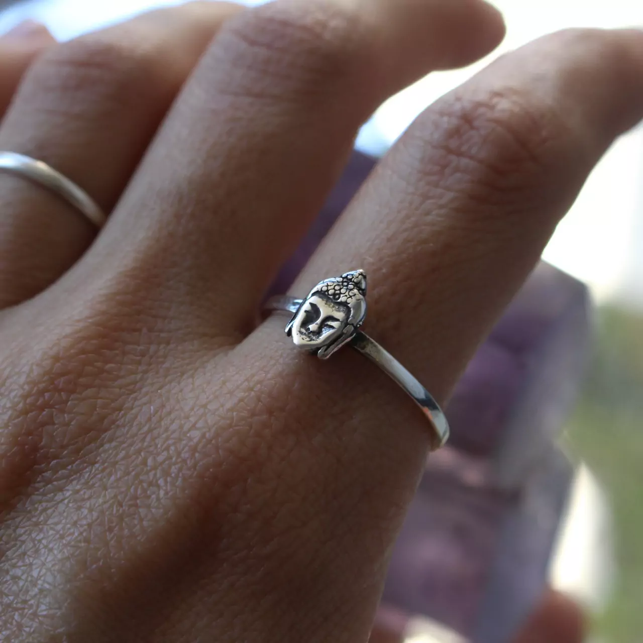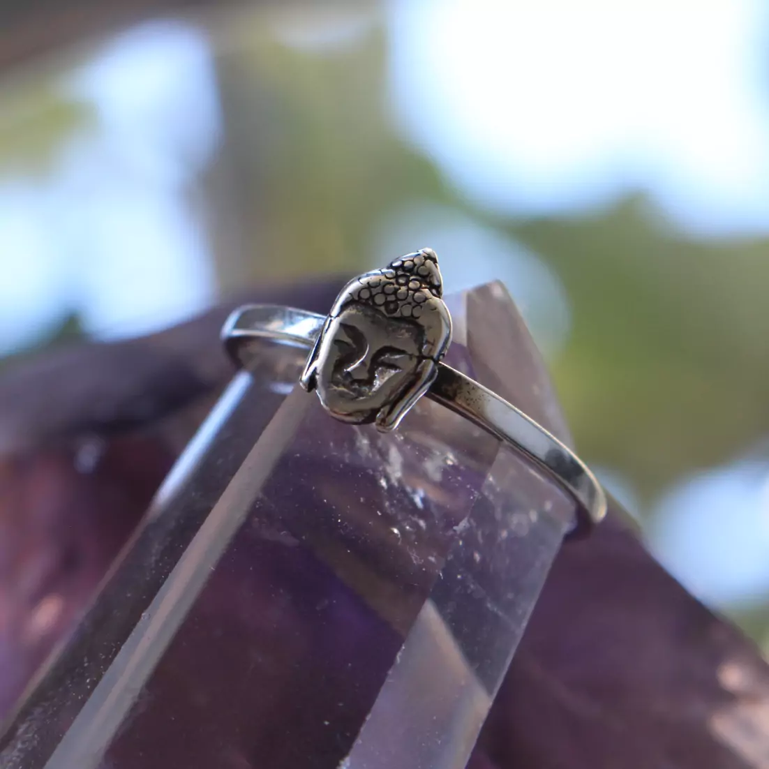 Anel de prata 925, também conhecida como prata de lei, com uma pequena face de Buda