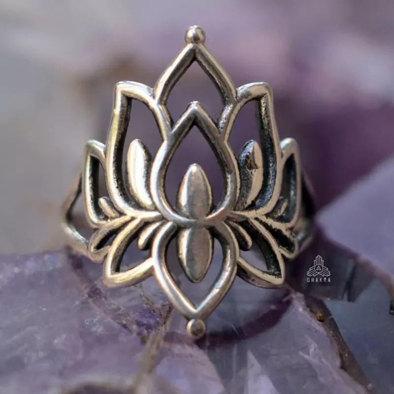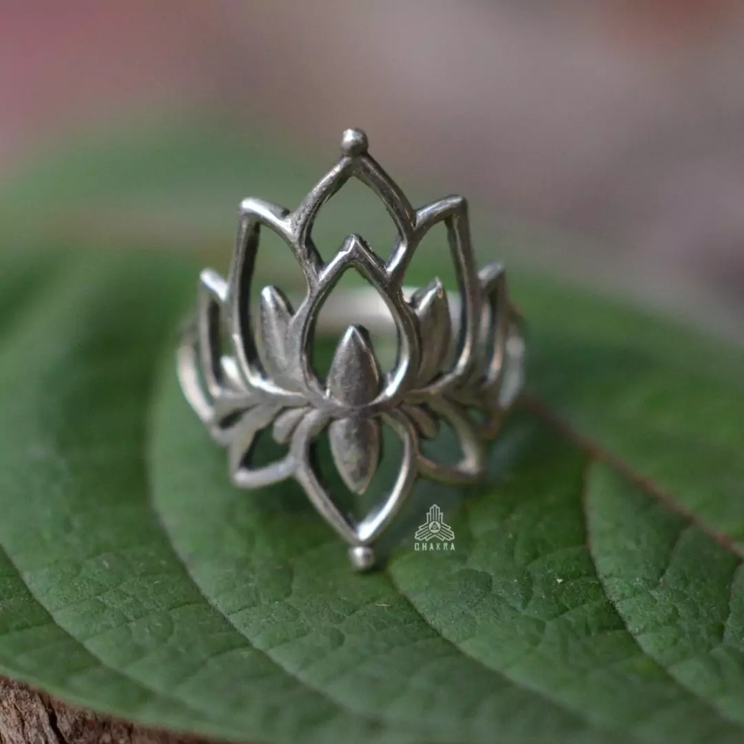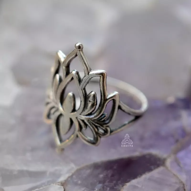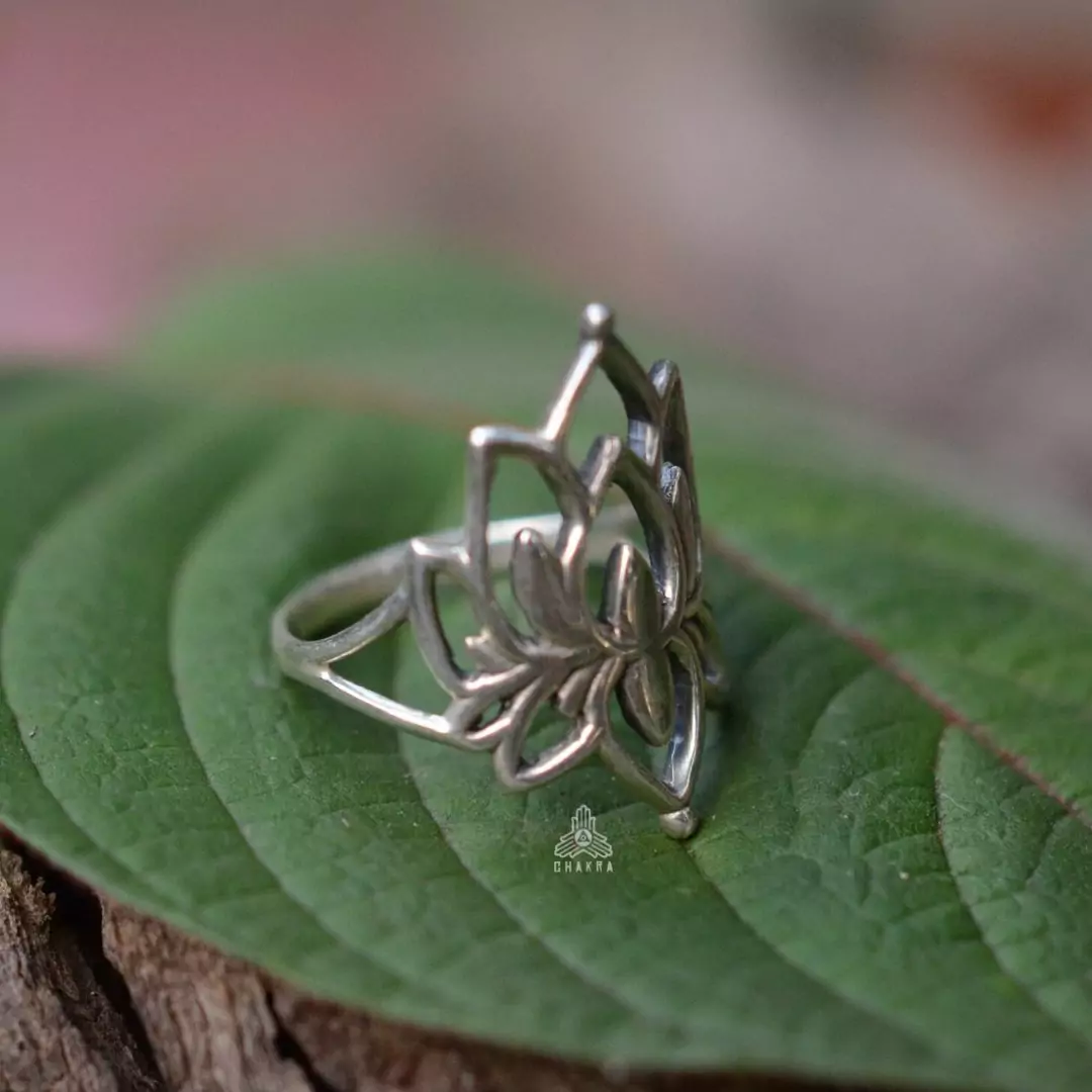 Anel de prata 925, também conhecida como prata de lei, com uma flor de lotus com detalhes vazados