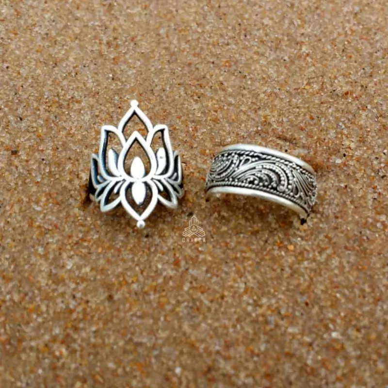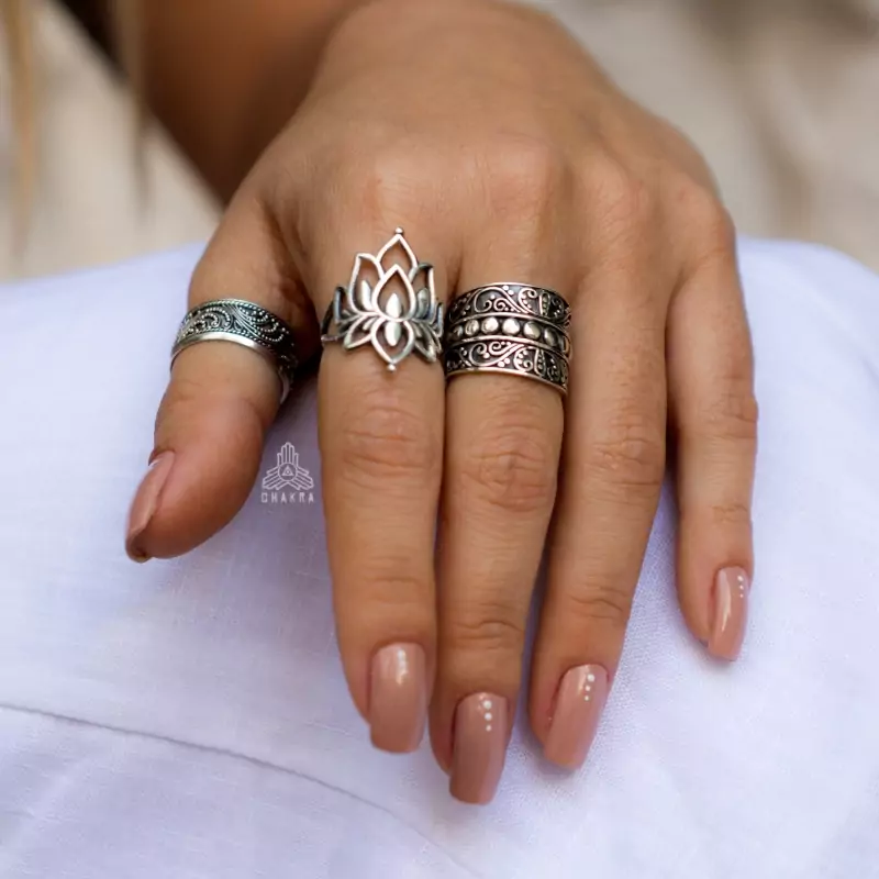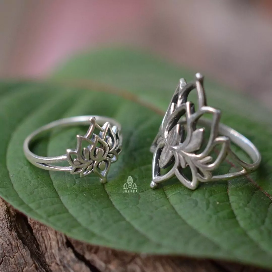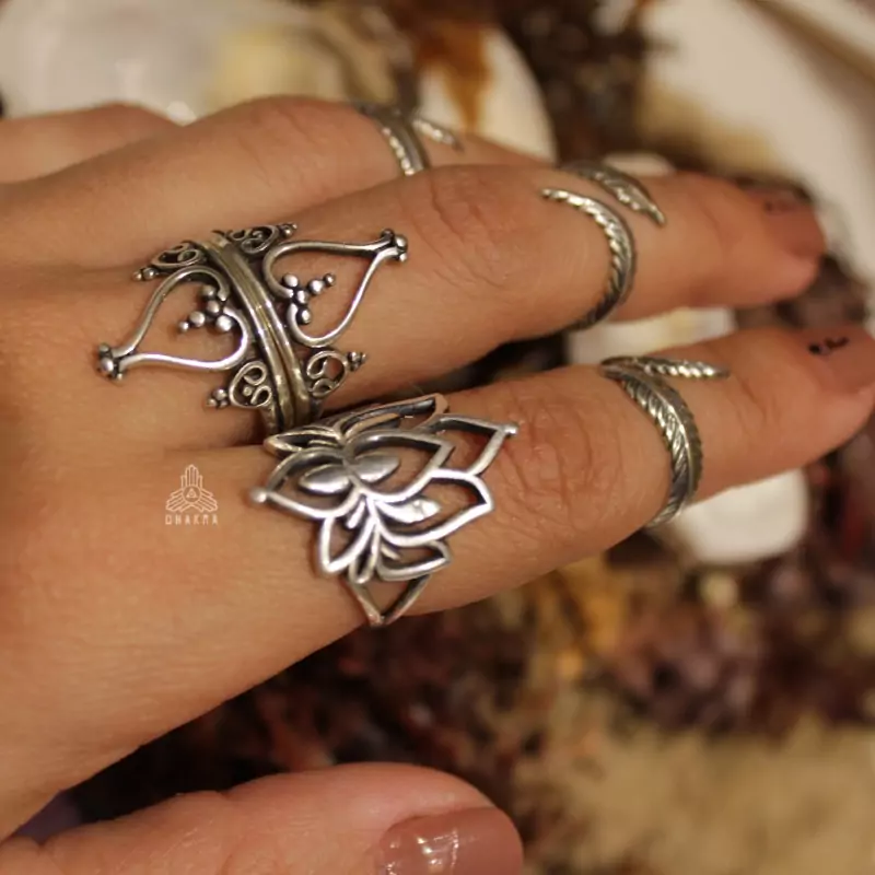 Anel de prata 925, também conhecida como prata de lei, com uma flor de lotus com detalhes vazados
