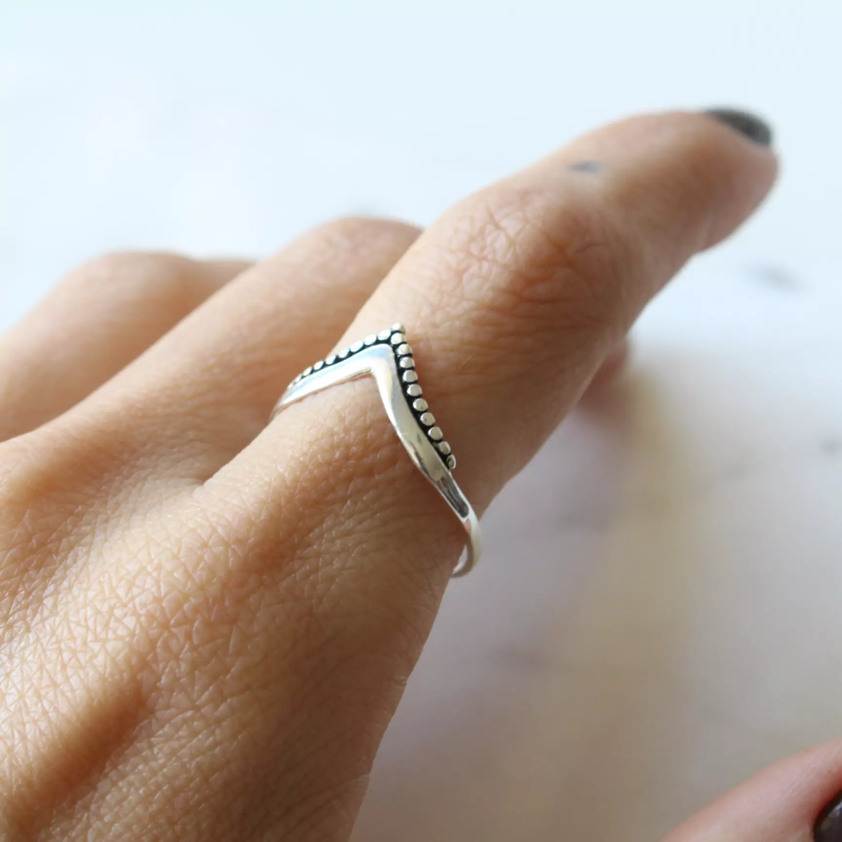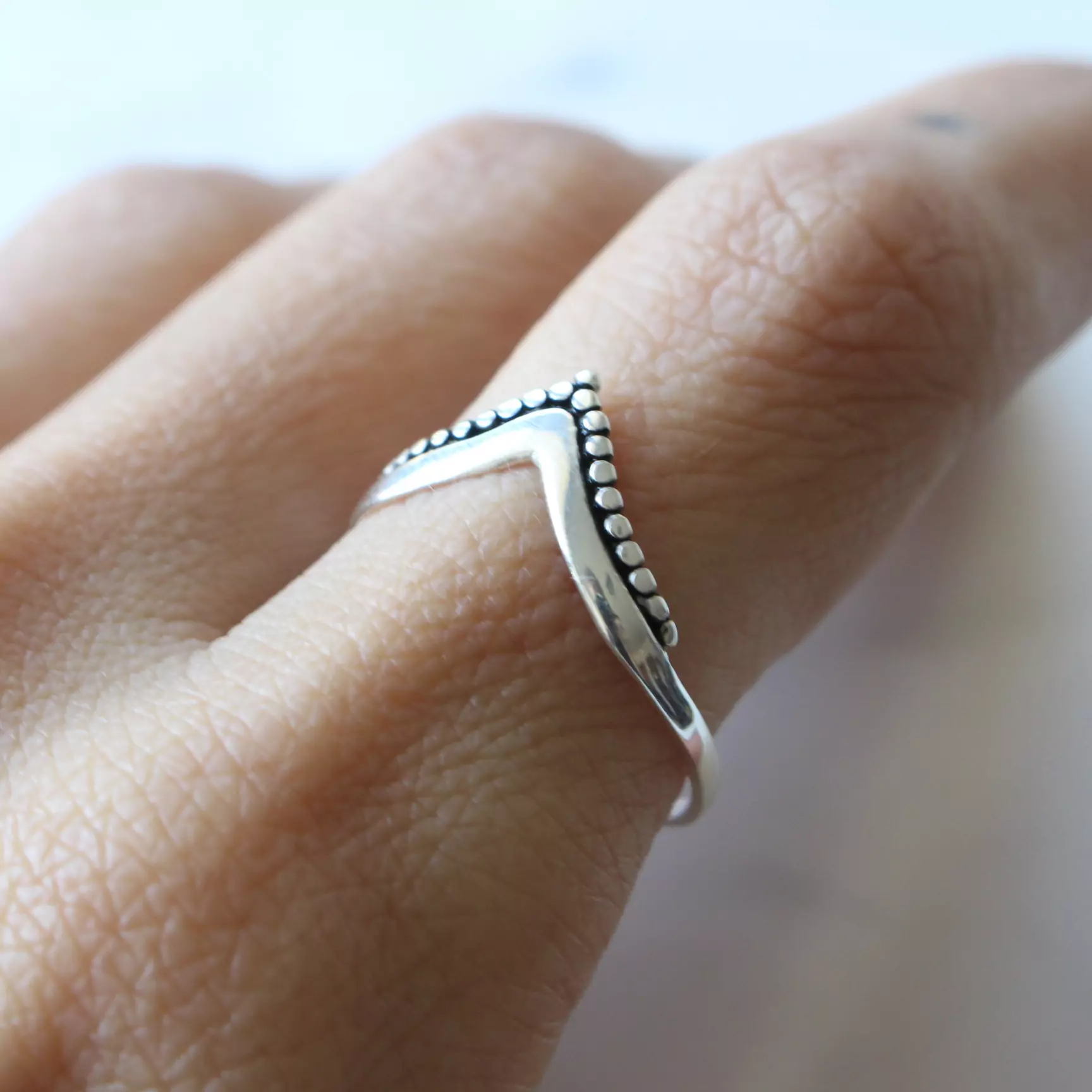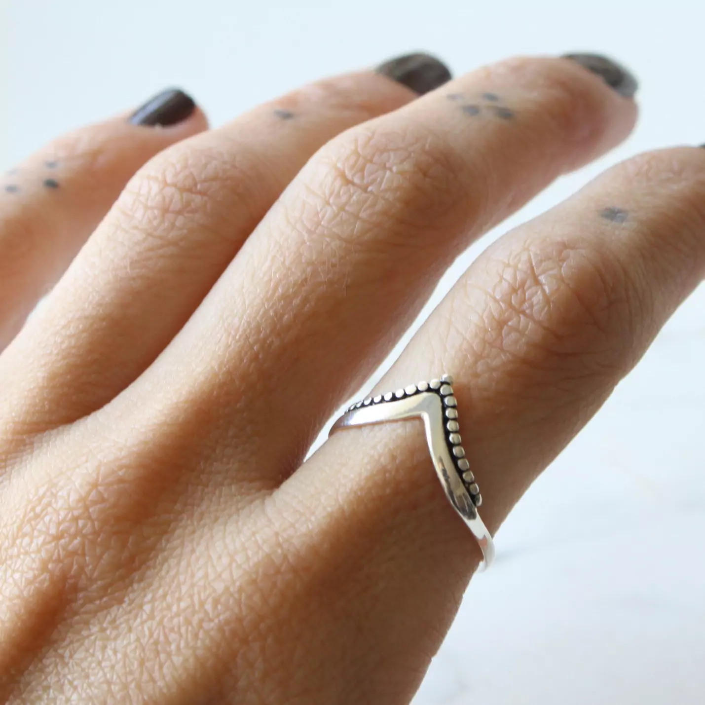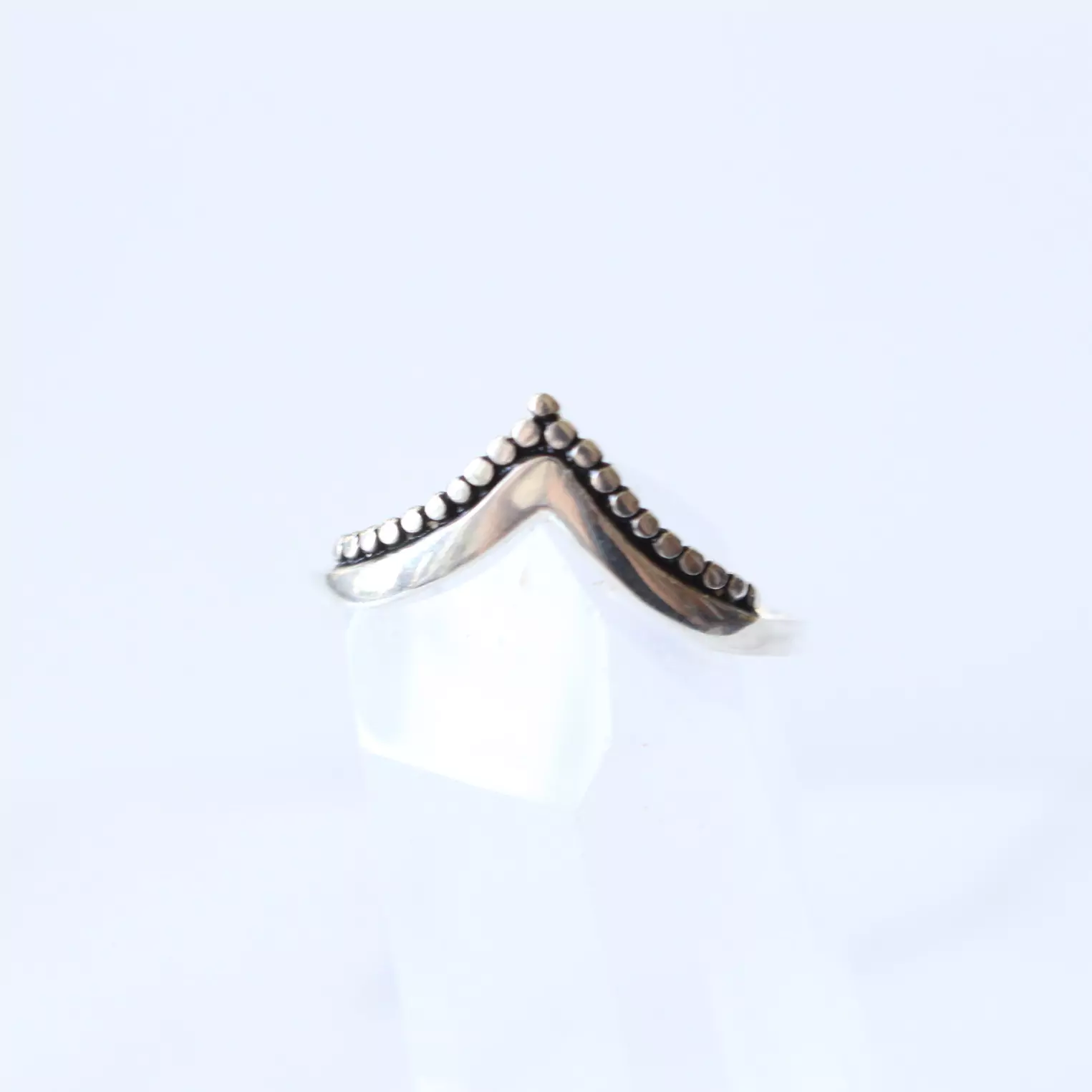 Anel de prata 925, tmbém conhecida como prata de lei, com detalhe em ponta V com bolinhas