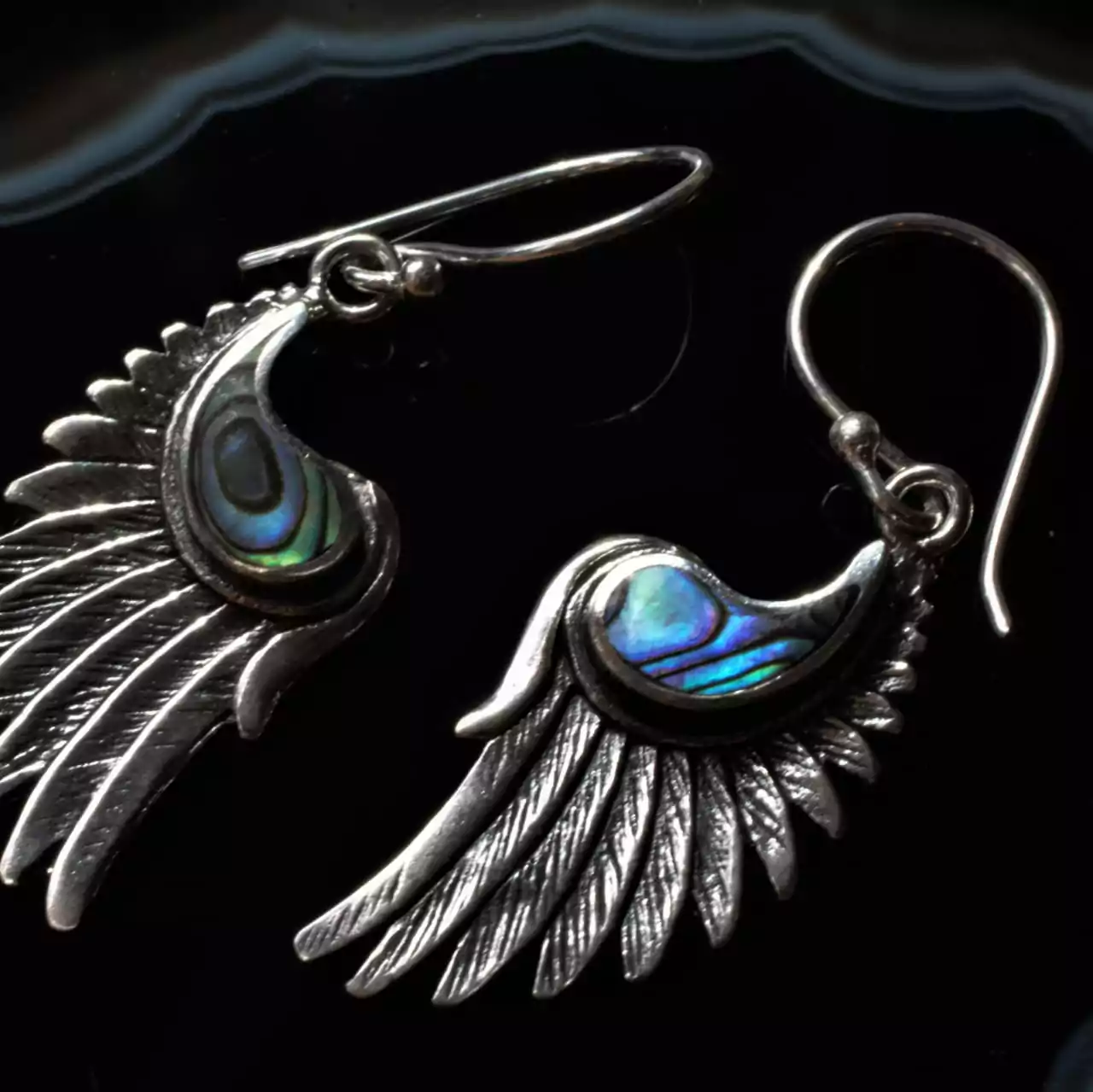 Brinco de prata 925, tambem conhecida como prata de lei, modelo de anzol com uma asa revestida com abalone natural.