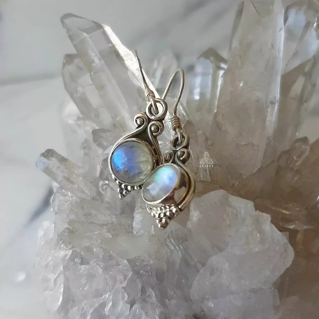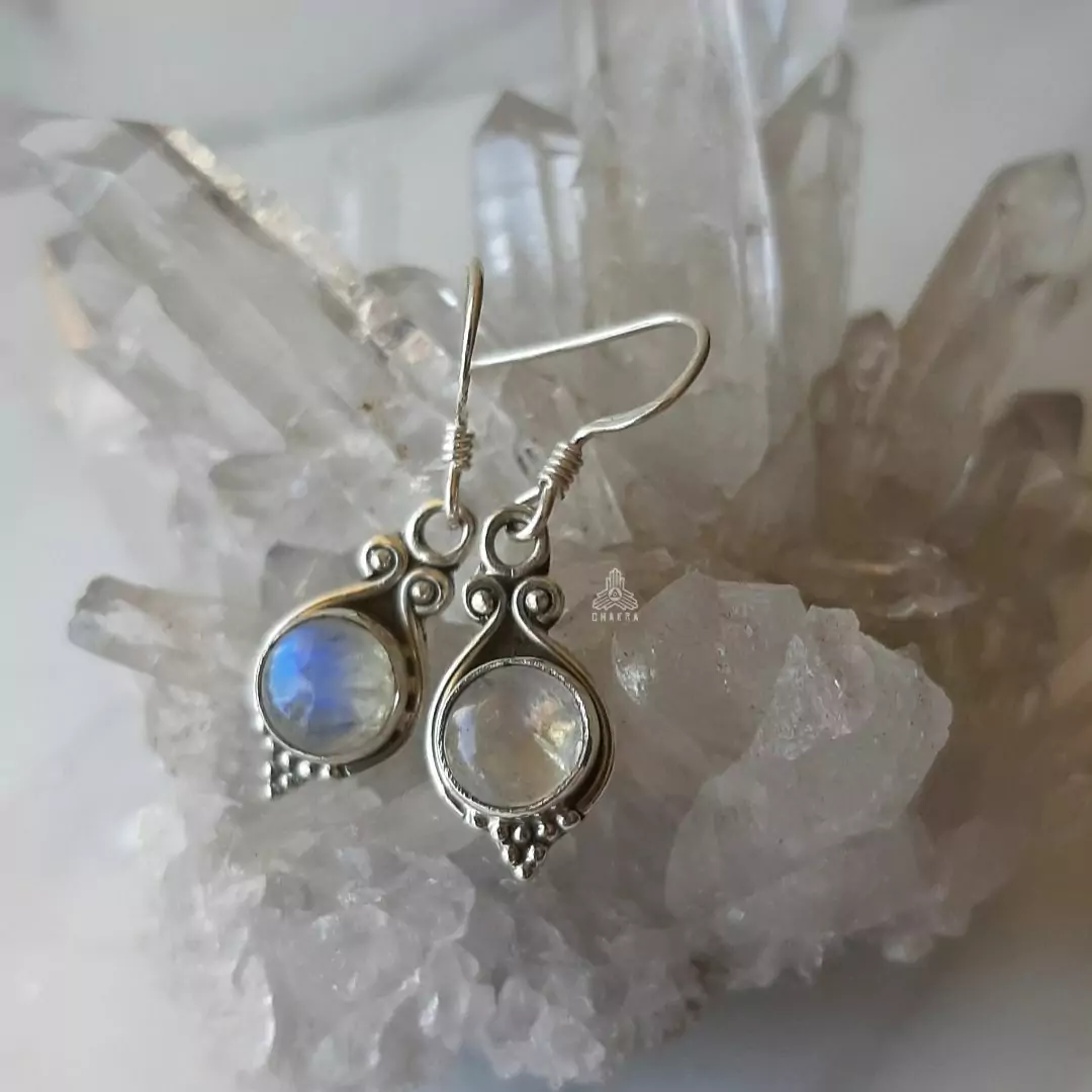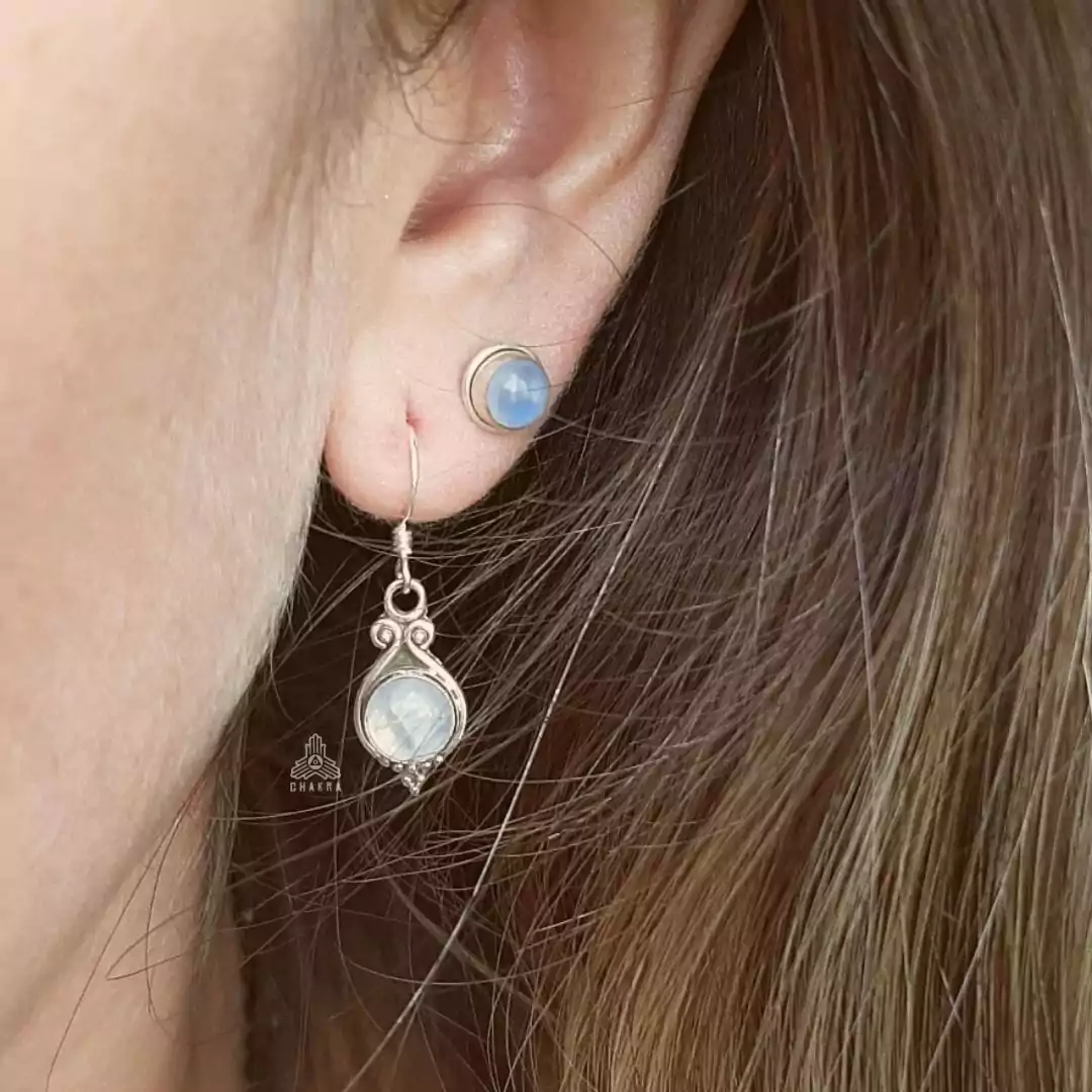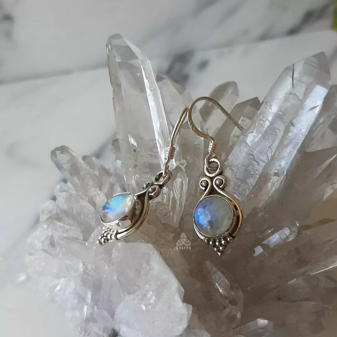 Brinco de prata 925, também conhecida como prata de lei, modelo de anzol com uma pedra da lua natural