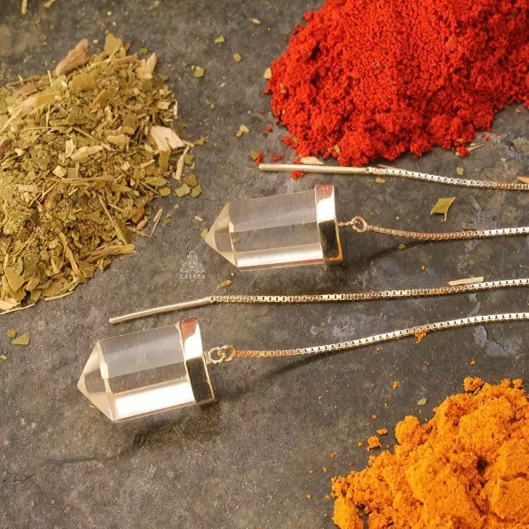 Brinco de prata 925, também conhecida como prata de lei, da linha Chakra AUTORAL, modelo pêndulo clássico com quartzo transparente natural