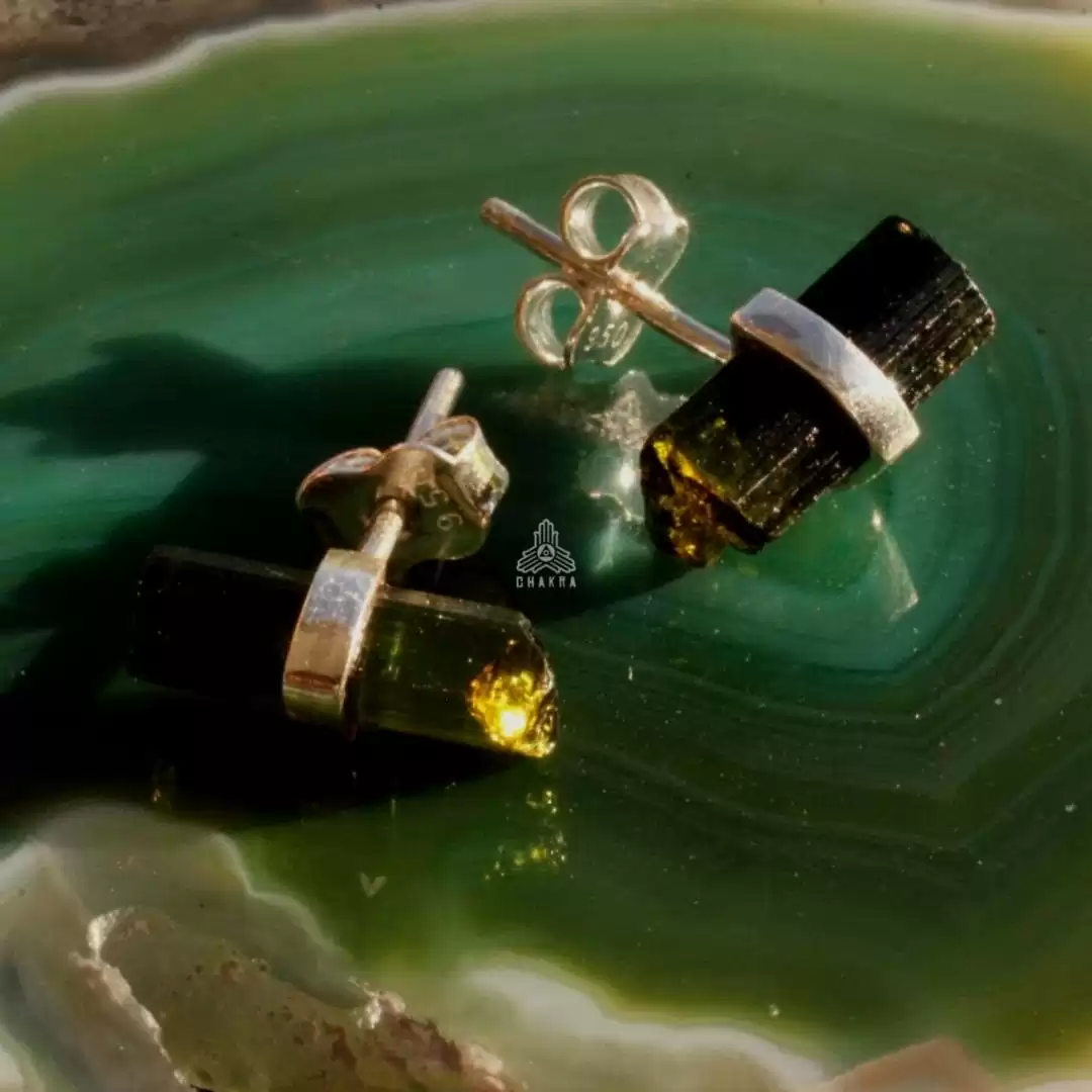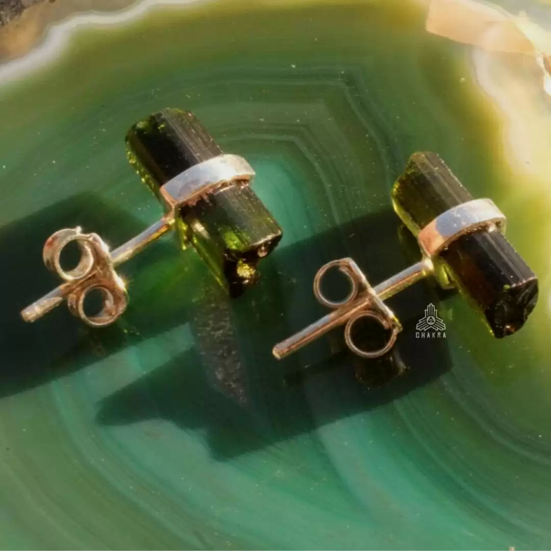 Brinco de prata 925, também conhecida como prata de lei, modelo solitário com turmalinas brutas