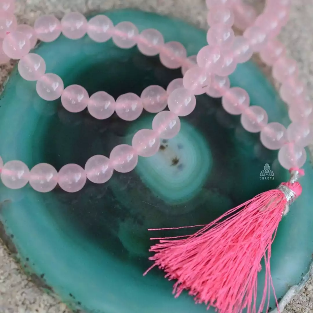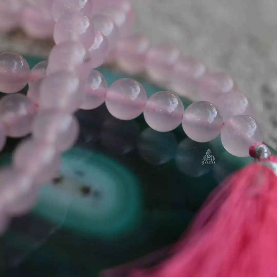 Japamala feito todo com quartzo rosa natural e tassel rosa