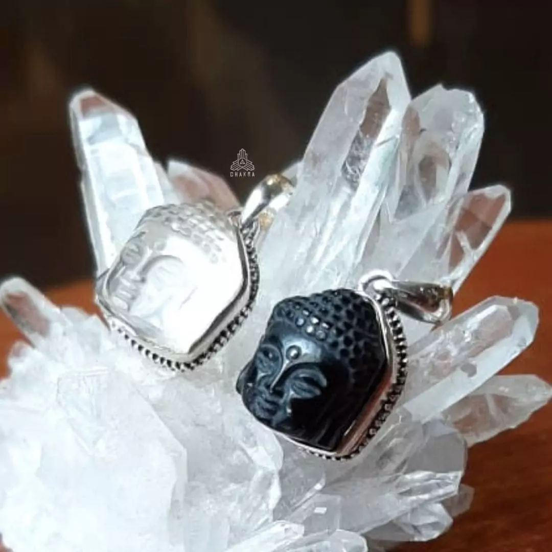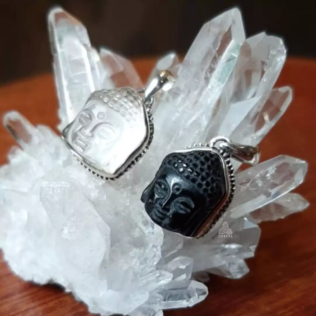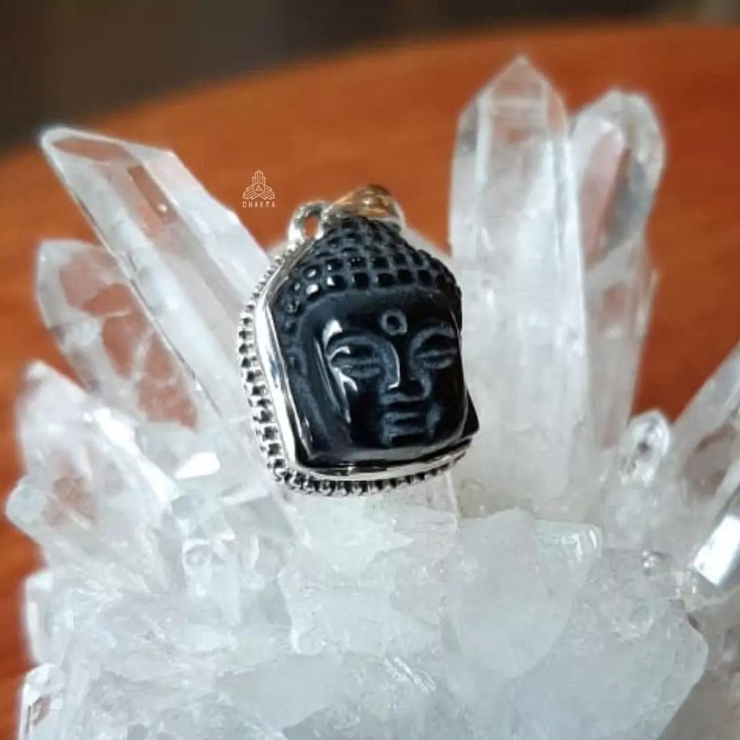 Pingente de prata 925, também conhecida como prata de lei, com a face de Buda entalhada no ônix