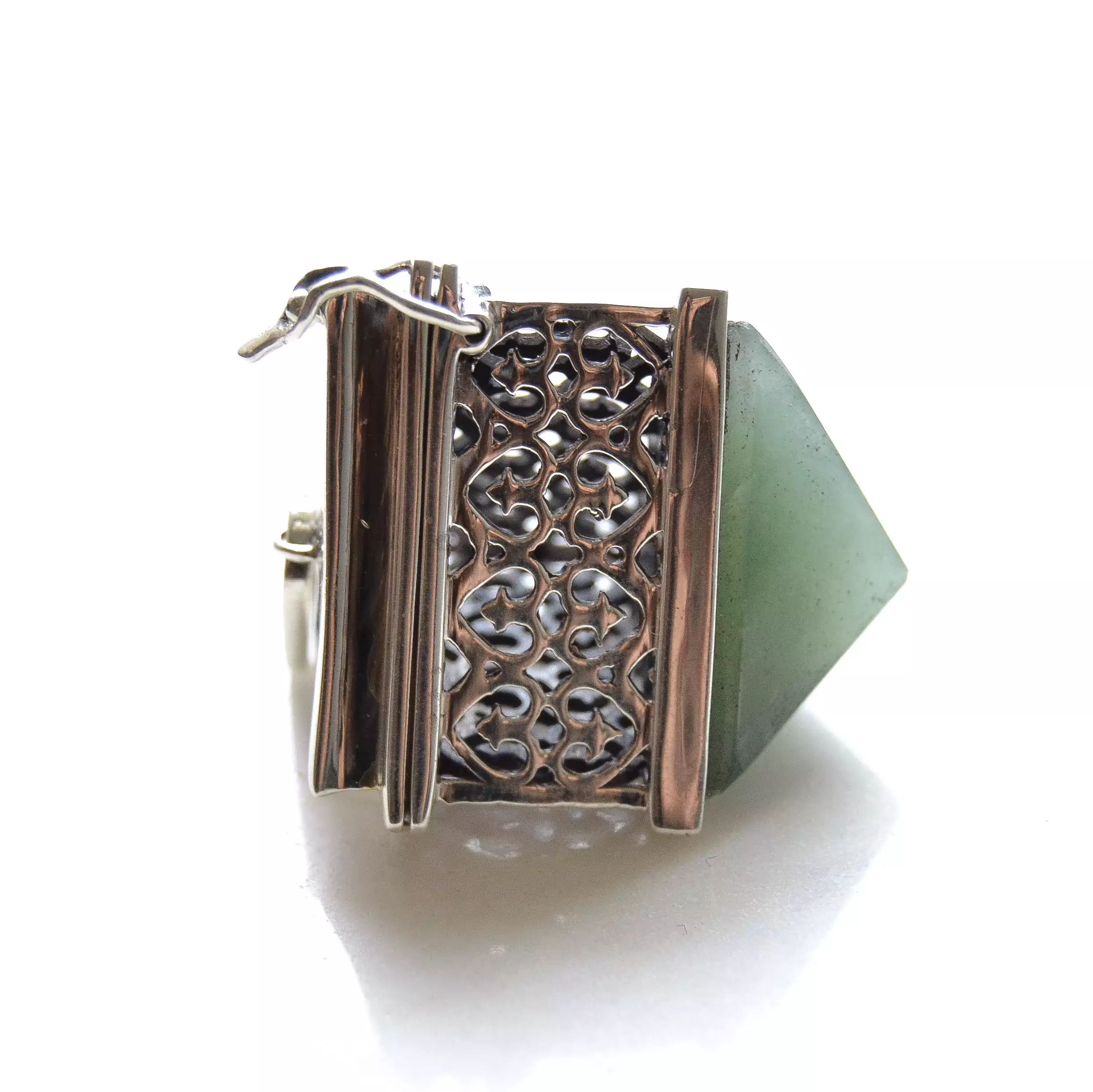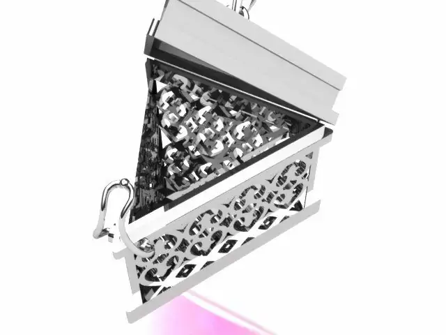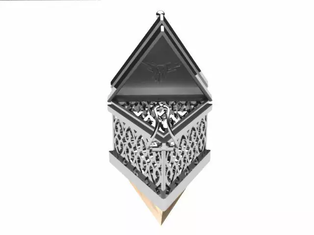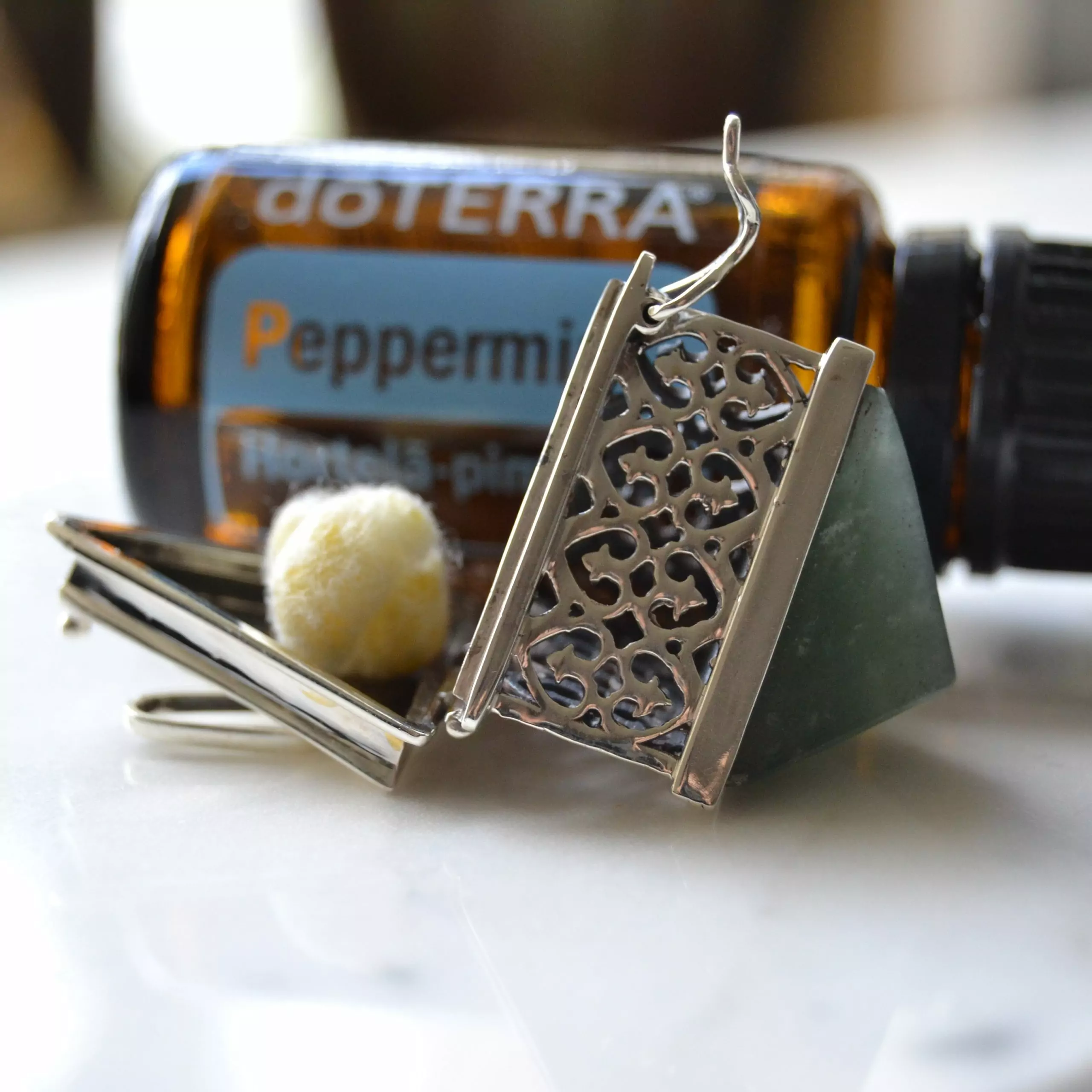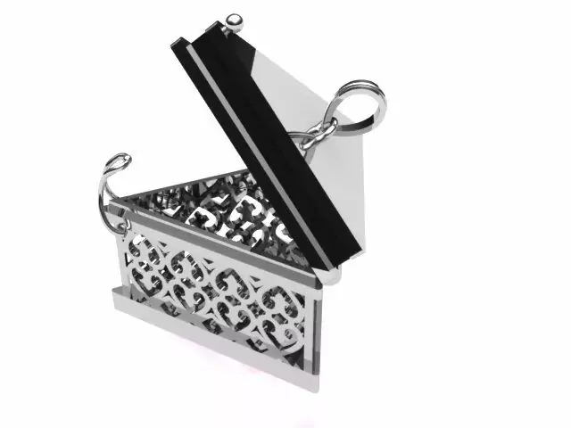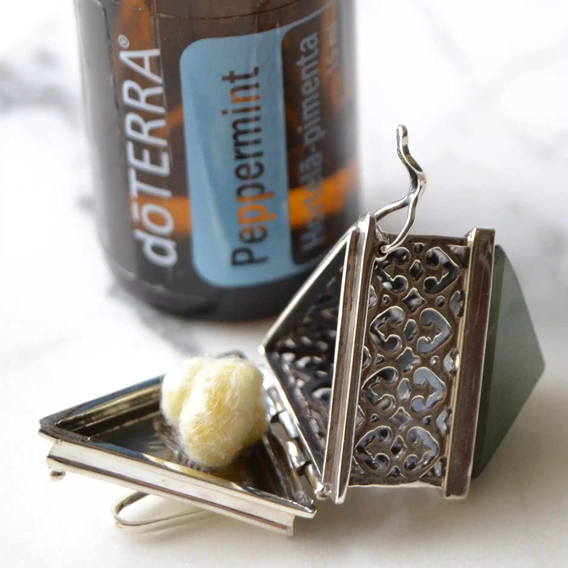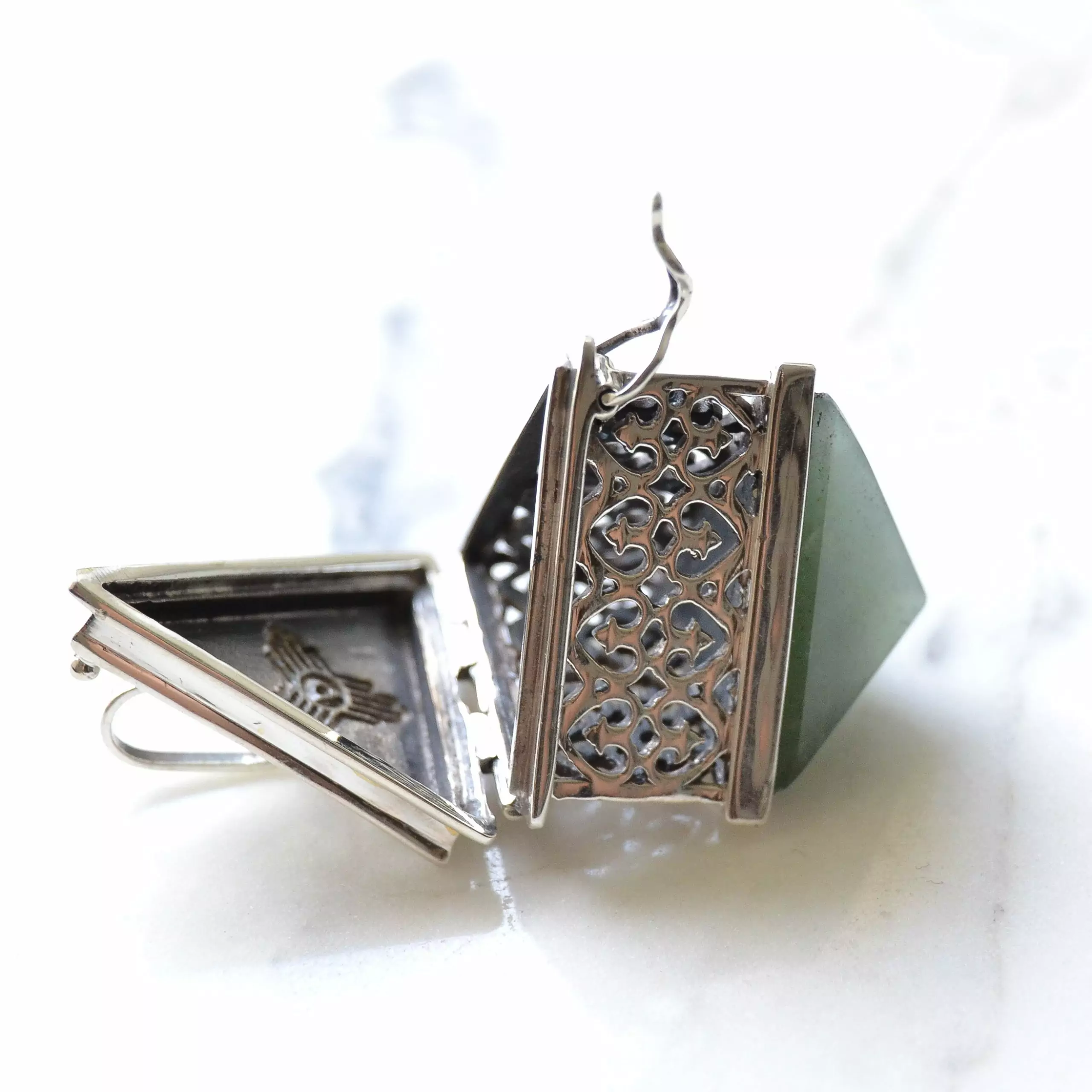 Pingente de prata 925, também conhecida como prata de lei, da linha Chakra AUTORAL, modelo difusor com a caixinha triangular com detalhes vazados e tampinha articulável.