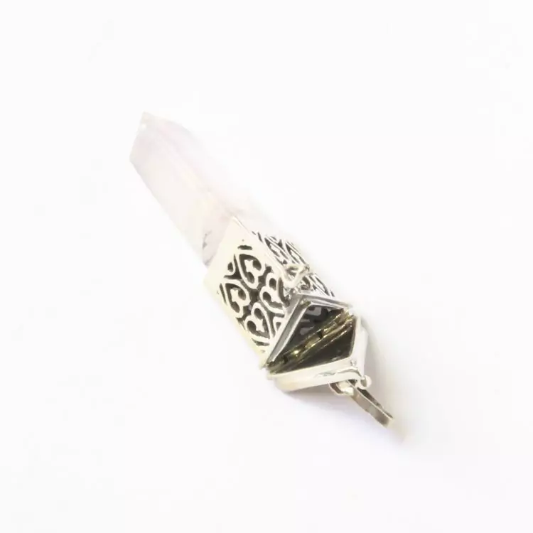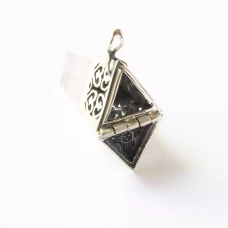 Ideal para aromaterapia, possui uma caixinha em formato triangular com detalhes vazados. Sugerimos usar um pouco de algodão dentro do compartimento para pingar o seu óleo essencial favorito.