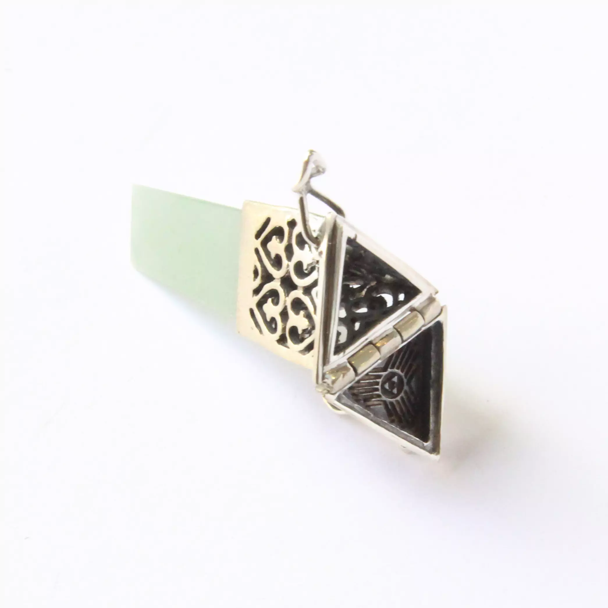 Ideal para aromaterapia, possui uma caixinha em formato triangular com detalhes vazados. Sugerimos usar um pouco de algodão dentro do compartimento para pingar o seu óleo essencial favorito.