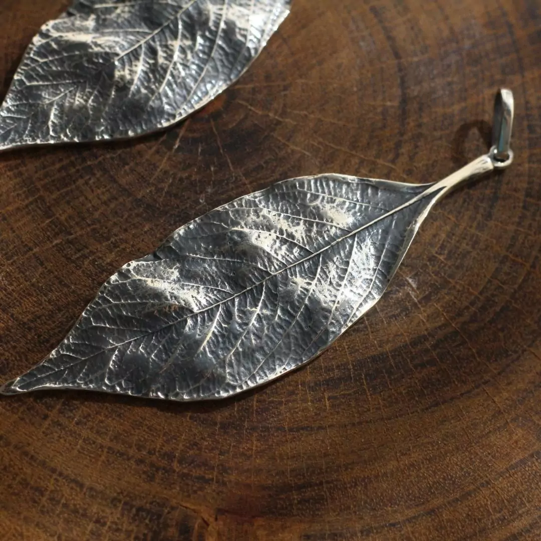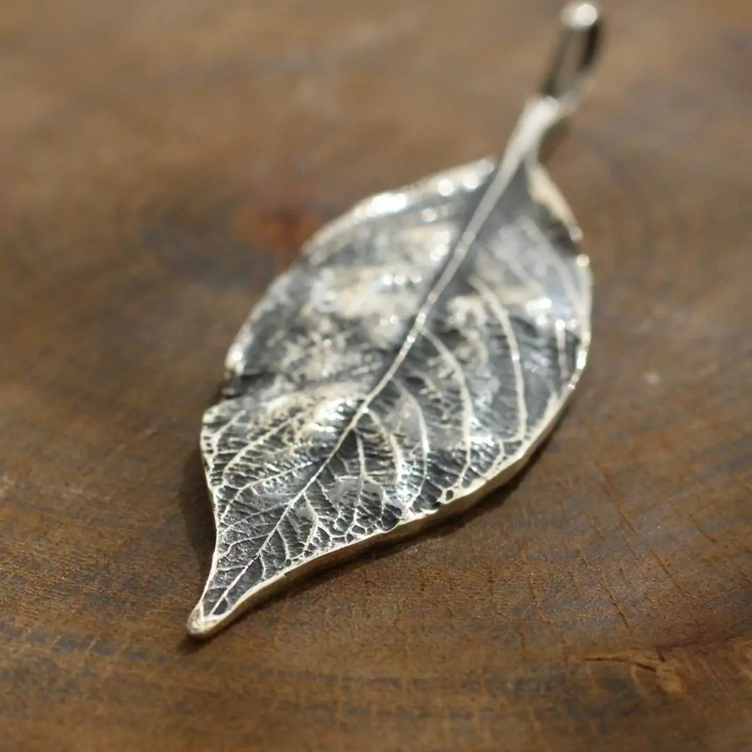 Pingente de prata 925, tambem conhecida como prata de lei com a representação real de uma folha