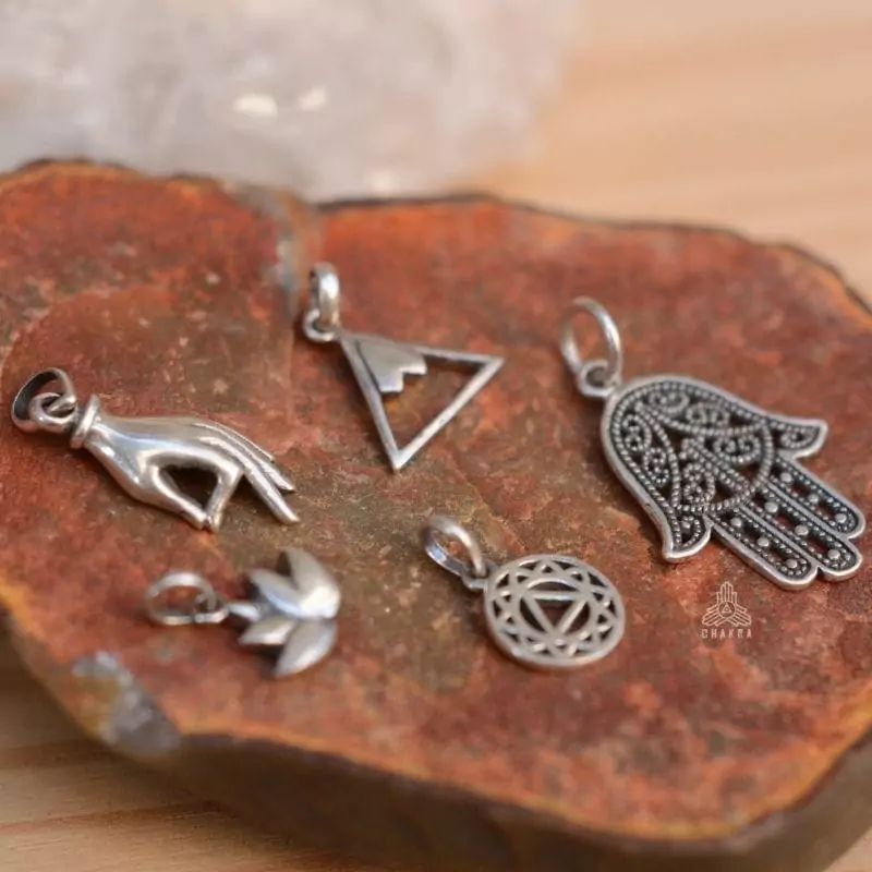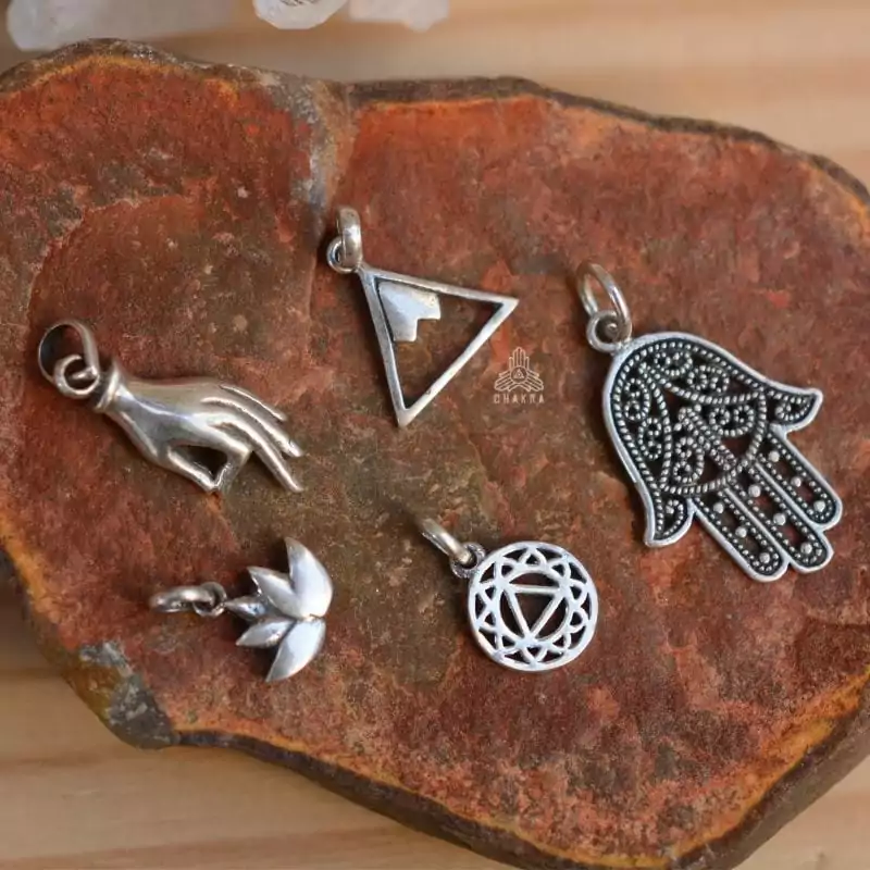 Pingente de prata 925, também conhecida como prata de lei, com uma flor de lotus