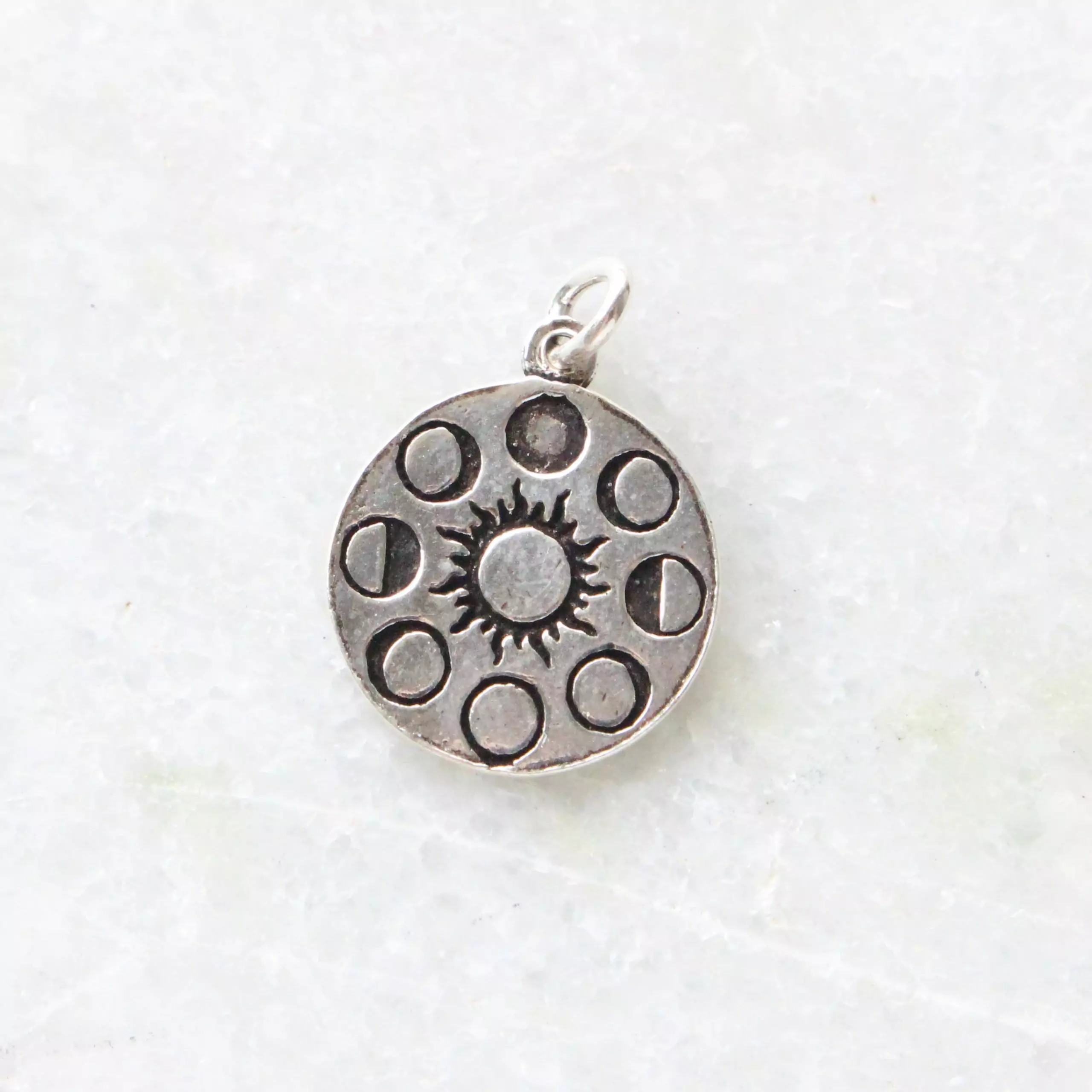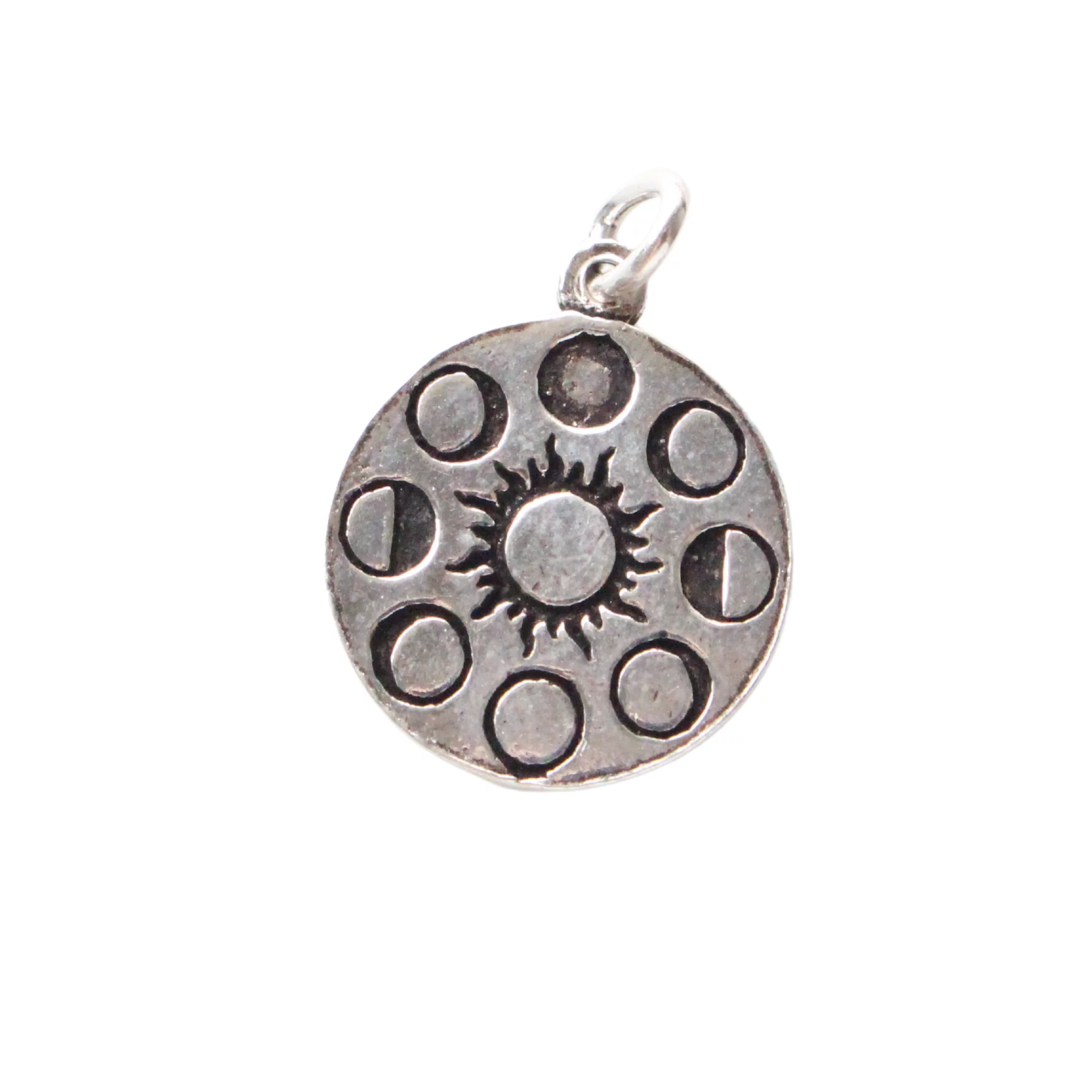 Pingente de prata 925, também conhecida como prata de lei, modelo medalha com a gravação das fases da lua