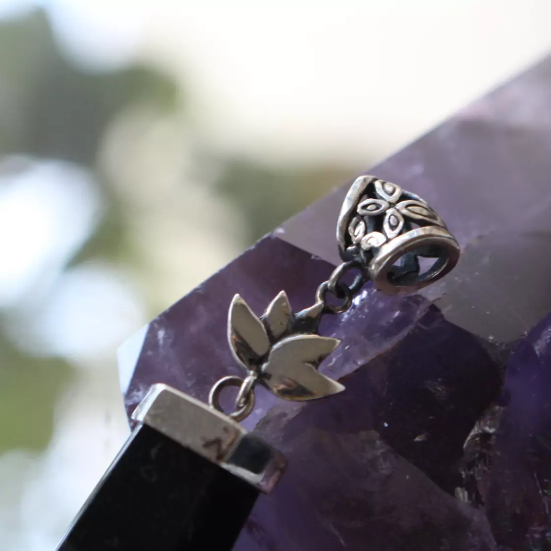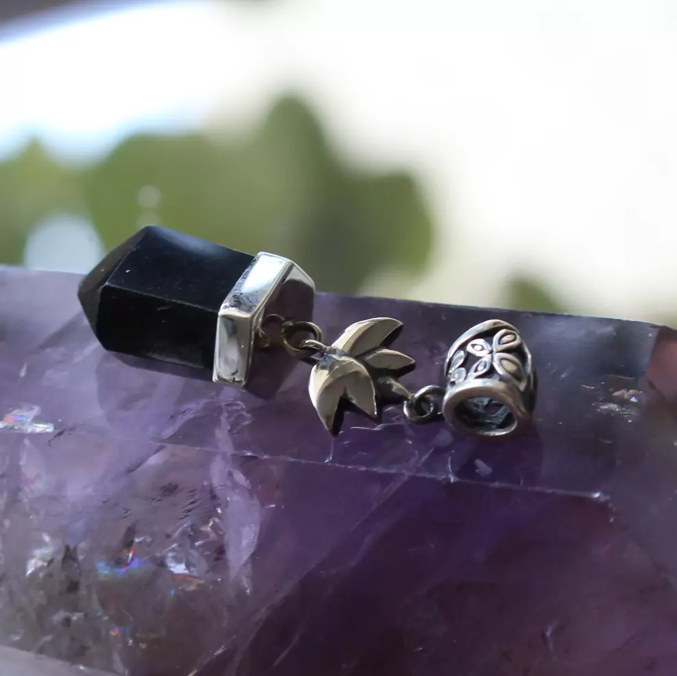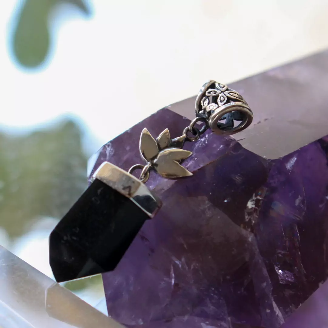Pingente obsidiana com lotus