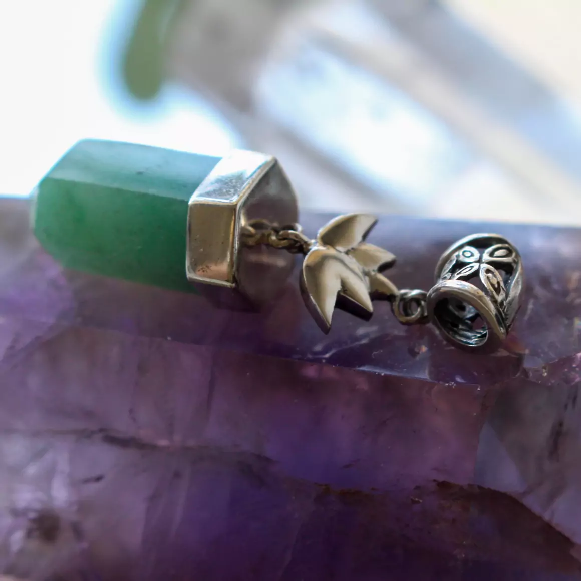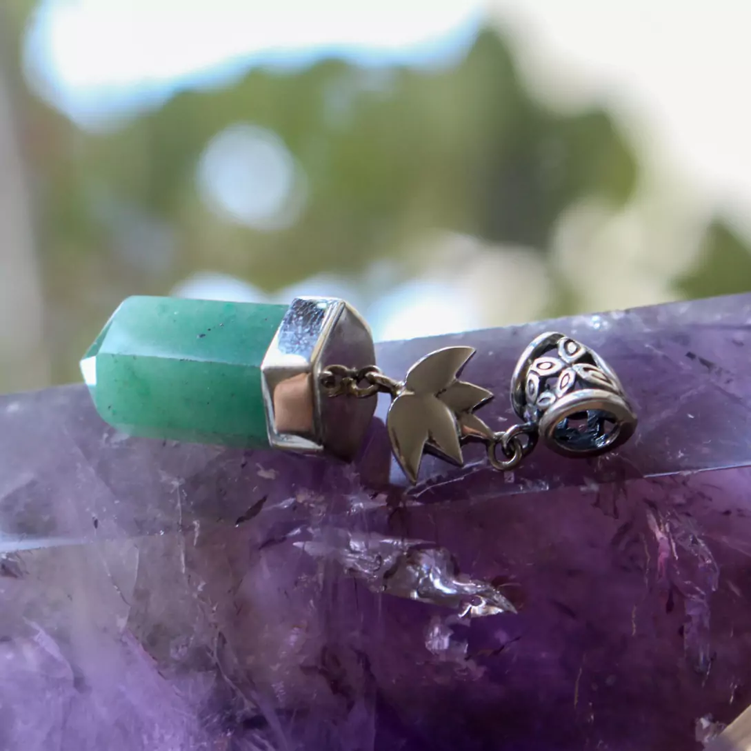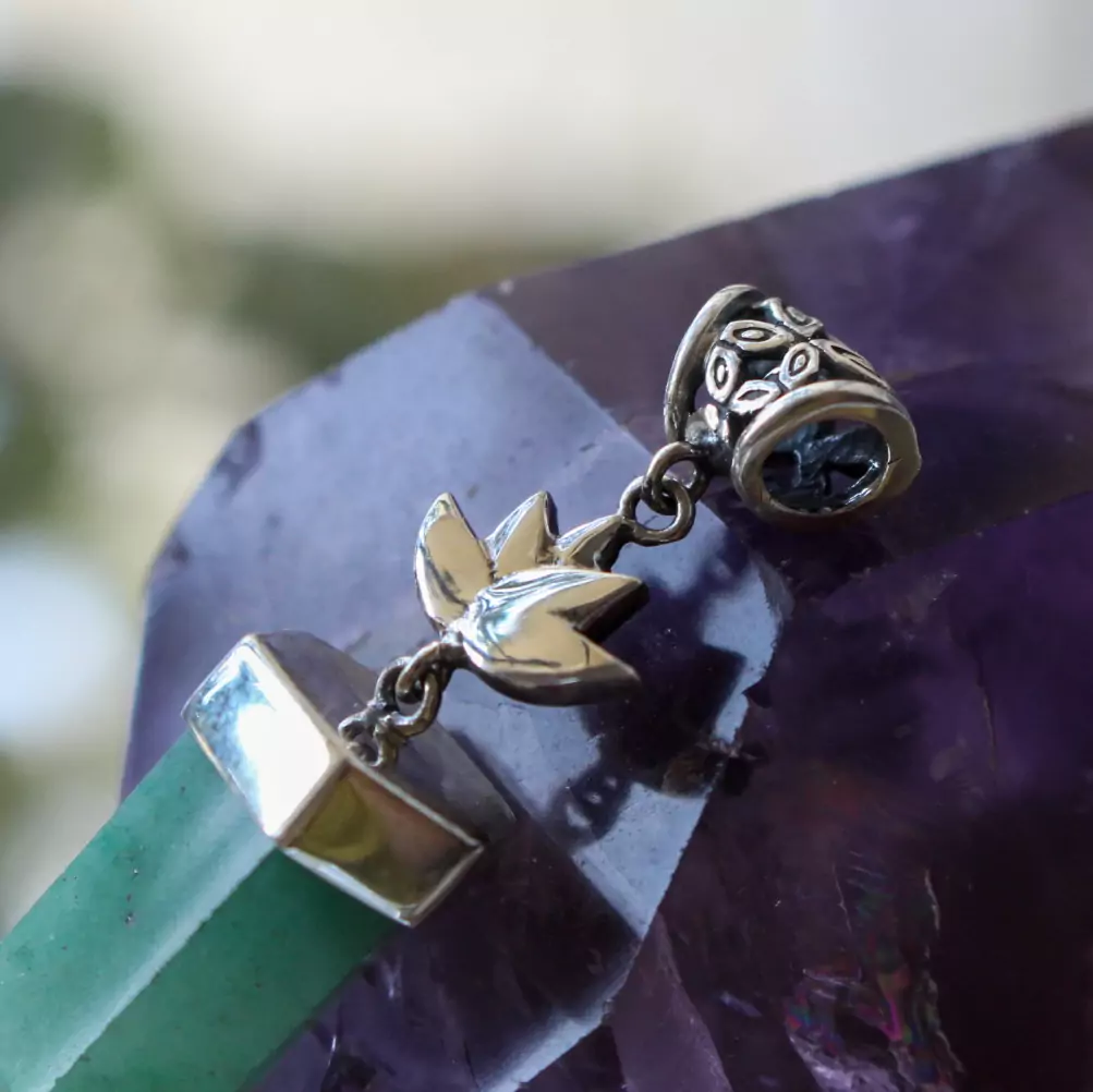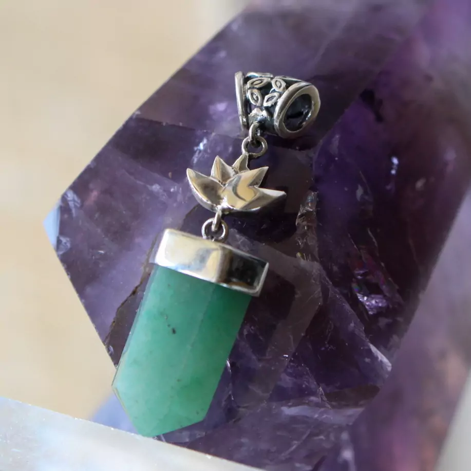 Pingente quartzo verde com lotus
