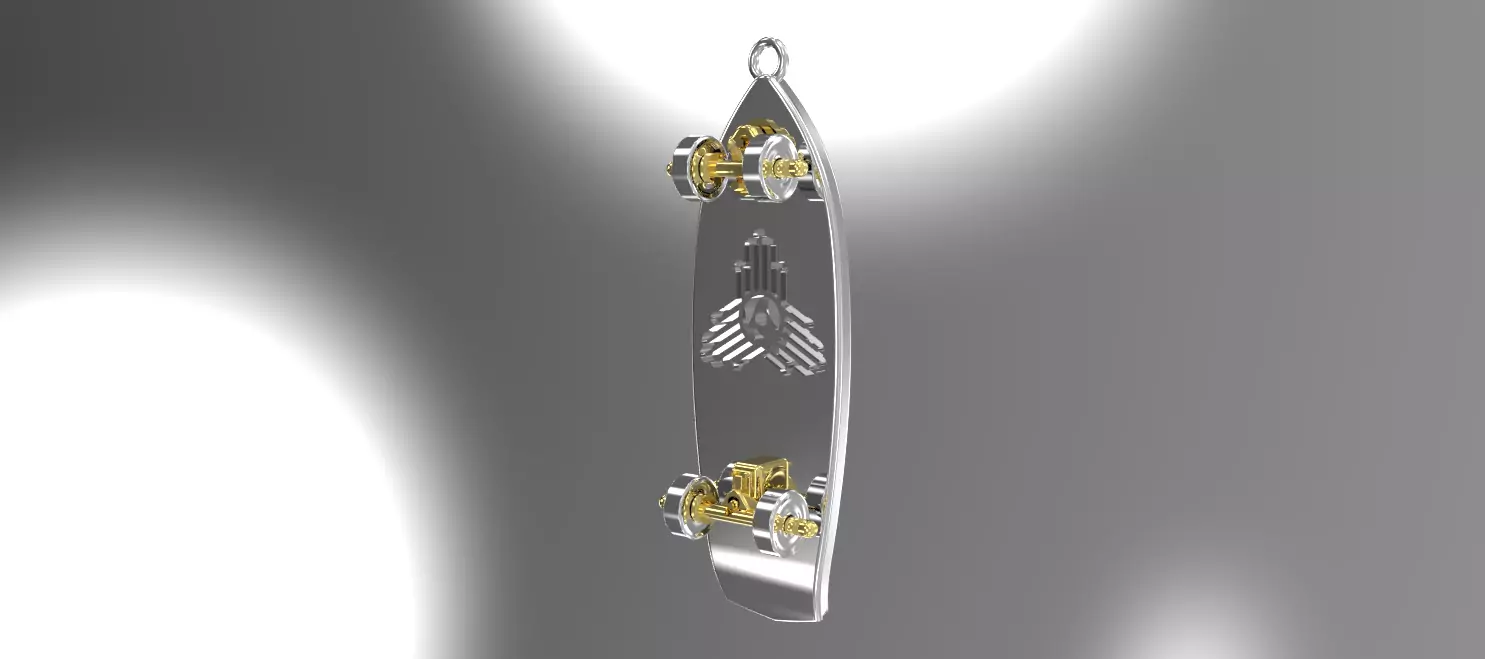 Seja transportado para a emoção do surf enquanto desliza sobre o asfalto com exclusivo Pingente de Prata “Skate Simulador de Surf” da Chakra. Desenvolvido por meio de técnicas avançadas de desenho gráfico e modelagem 3D, este pingente representa a fusão perfeita entre o mundo do skate e a energia do surf.