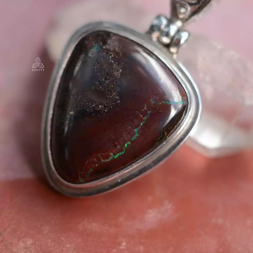 Pingente de prata 925, também conhecida como prata de lei, com uma opla australiana natural em forma triangular