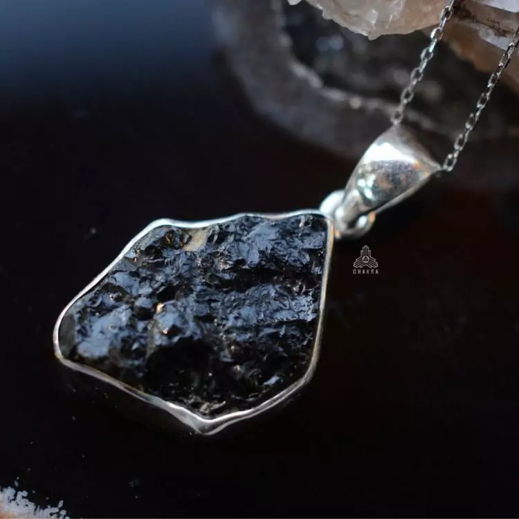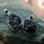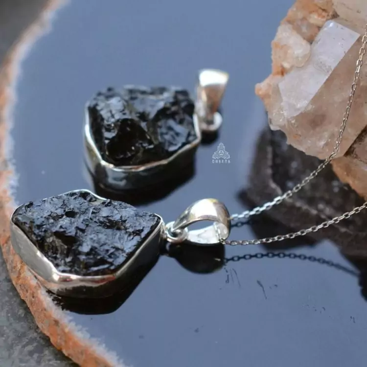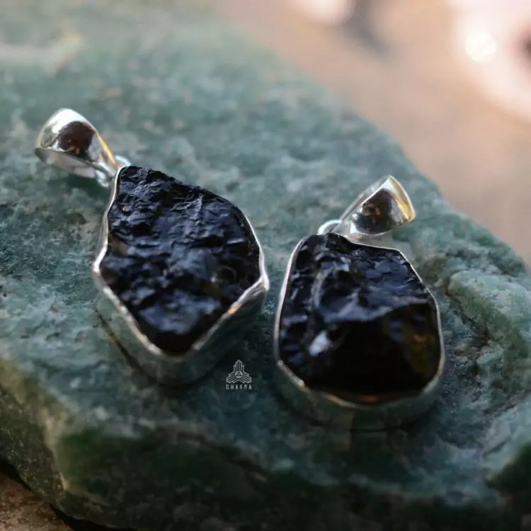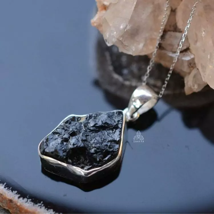 Pingente de prata 925, também conhecida como prata de lei, com uma turmalina negra natural em sua forma bruta