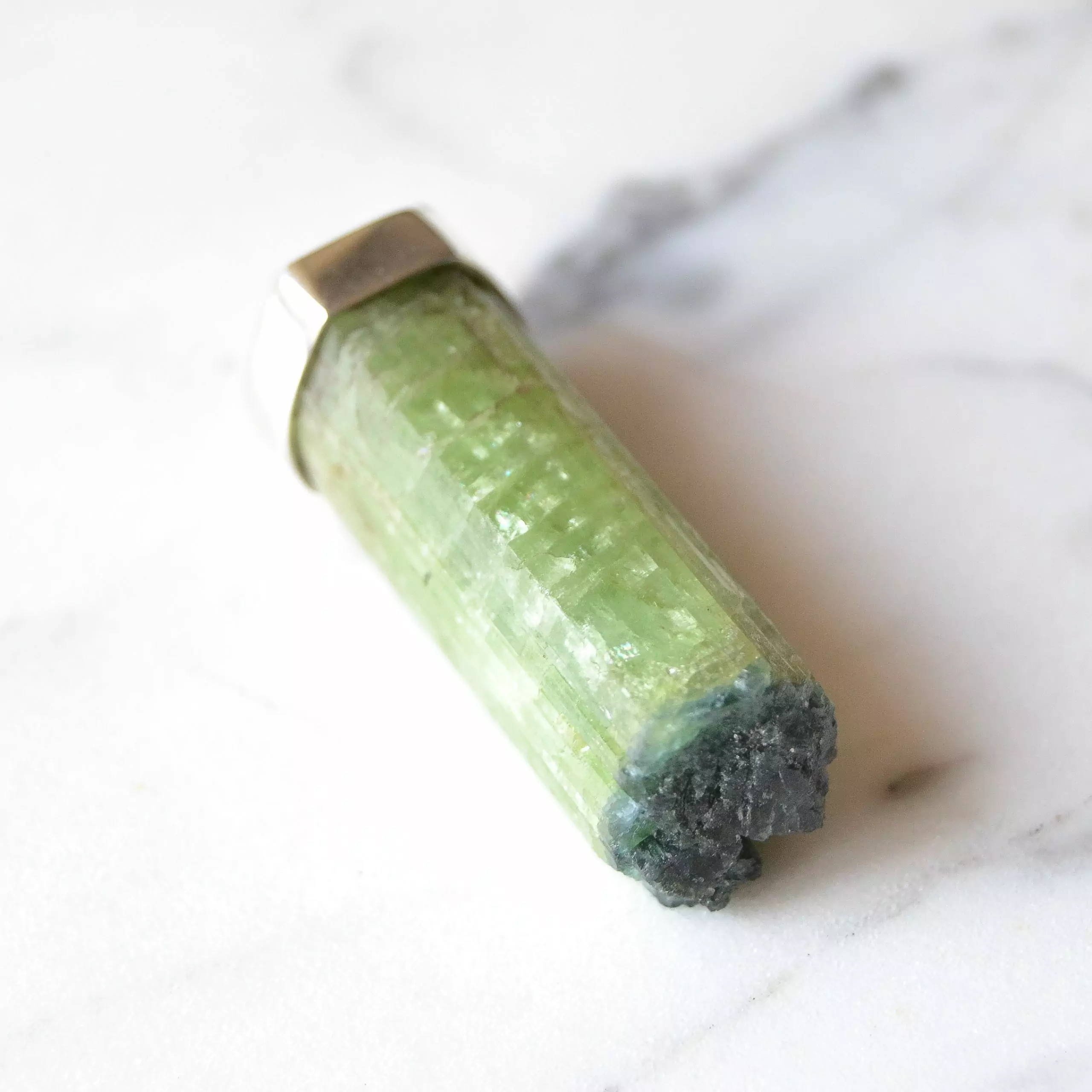 Pingente de prata 925, também conhecida como prata de lei, da linha CHAKRA AUTORAL , com uma turmalina verde natural em seu estado bruto