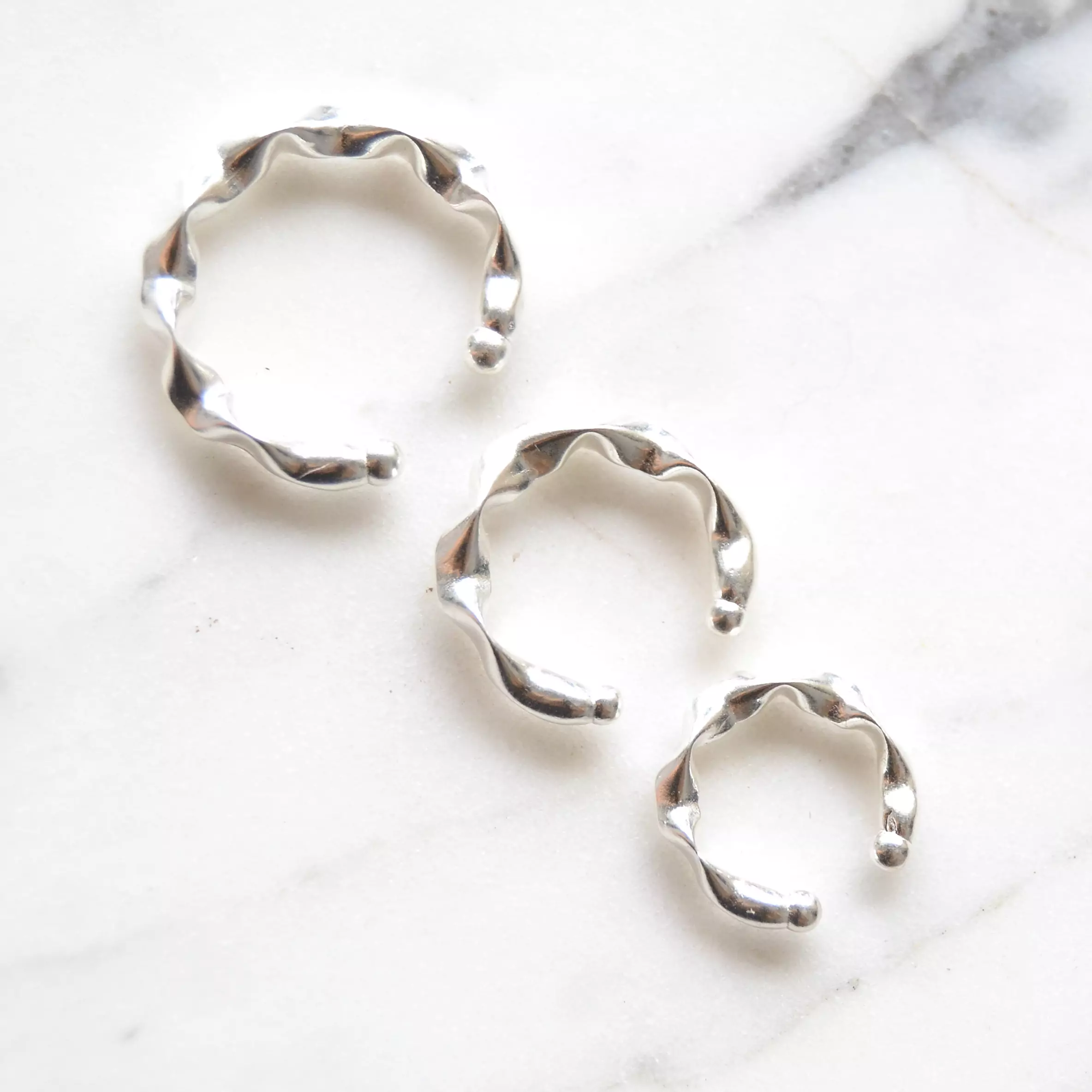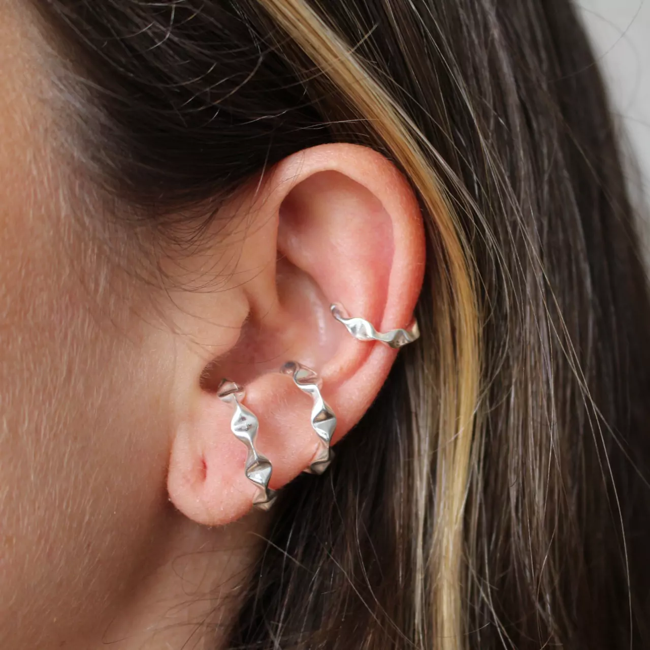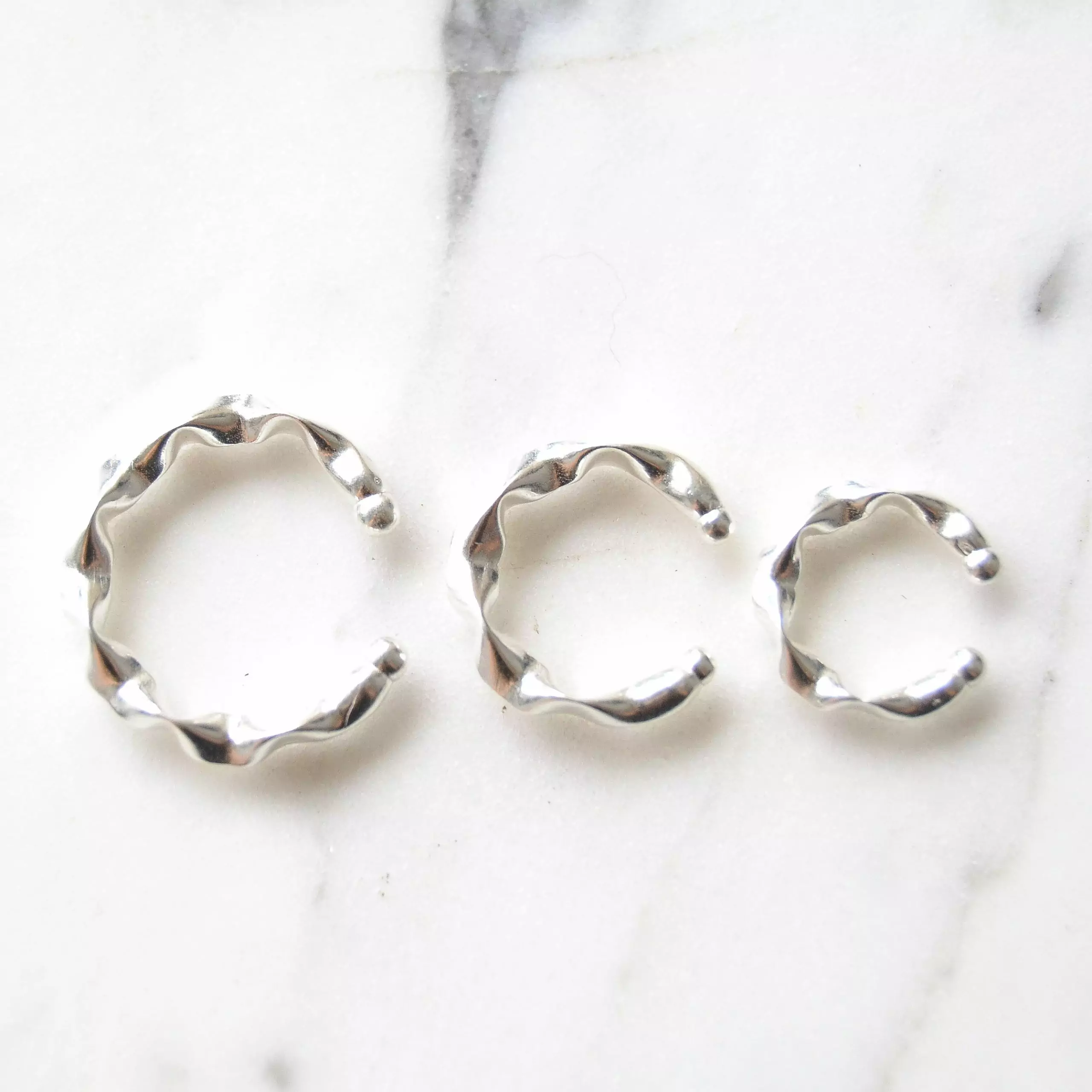 Kit com 3 brincos de prata 925, também conhecida como prata de lei, modelos de pressão com três tamanhos diferentes, para poder colocar em locais diferentes da orelha